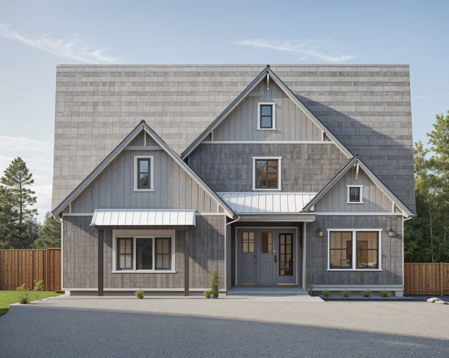 exterior shot enhance the overall lighting and materials throughout add warm lighting from the wall sconces architecture