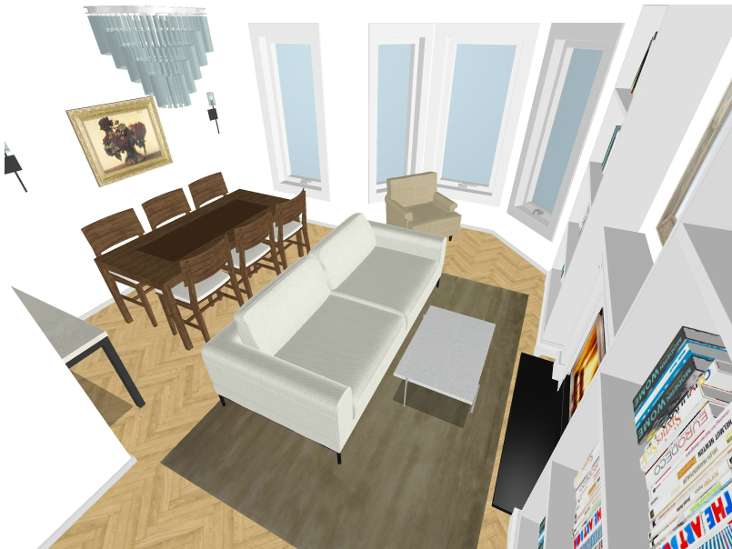 render but dont include books in the bookshelf make it plain the couch is in white linen rug is dark brown