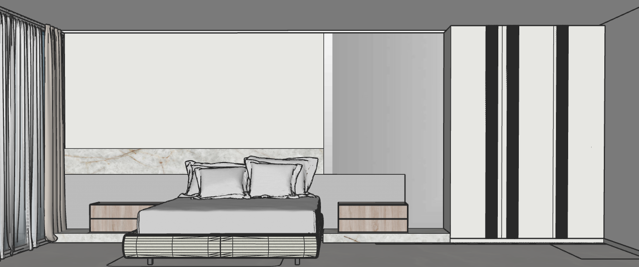 genera un render realista y en la zona que aparece gris debe ser un espejo en bronce