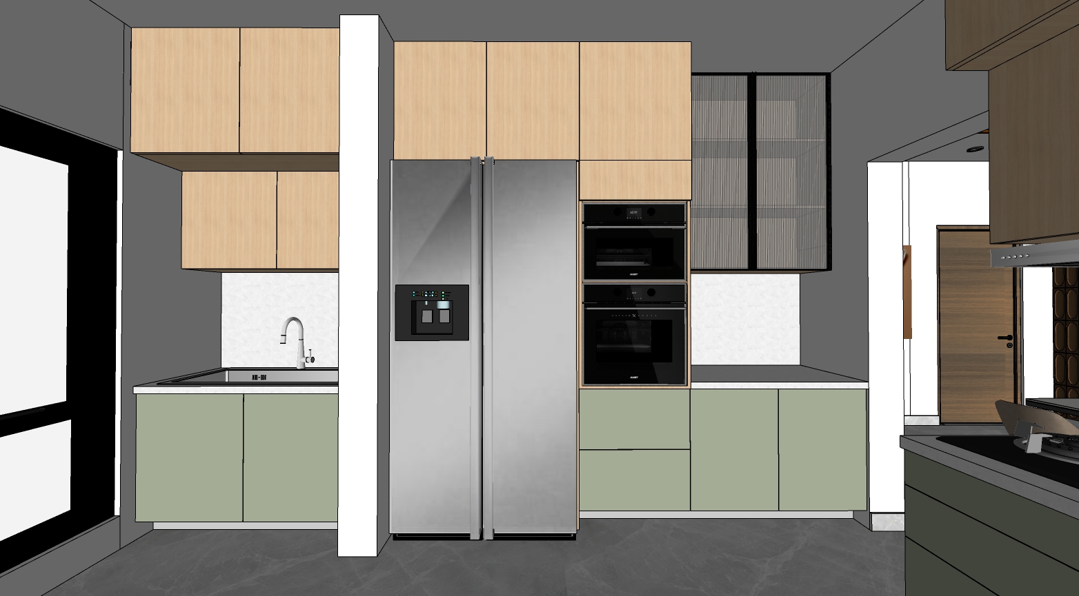 create a realistic render provide illumination for light fixtures and undercabinet lights below the wall cabinets remove the lights in the skirting area provide liight in the dining area change the wood texture on the shutters to a mild wood grain texture