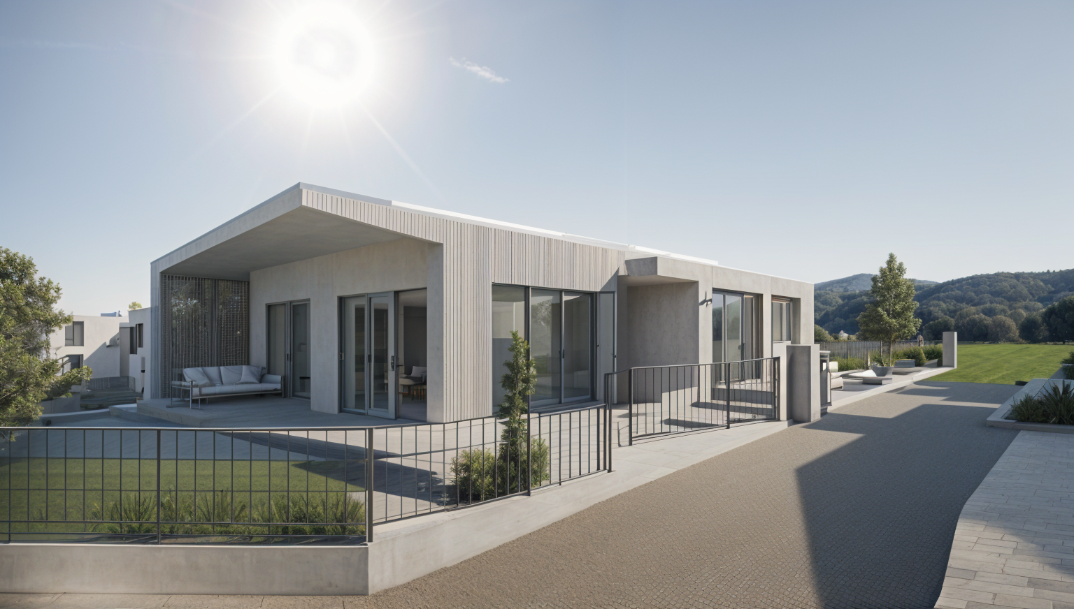create a beautifully photo realistic render based in the same proportions of the picture architecture