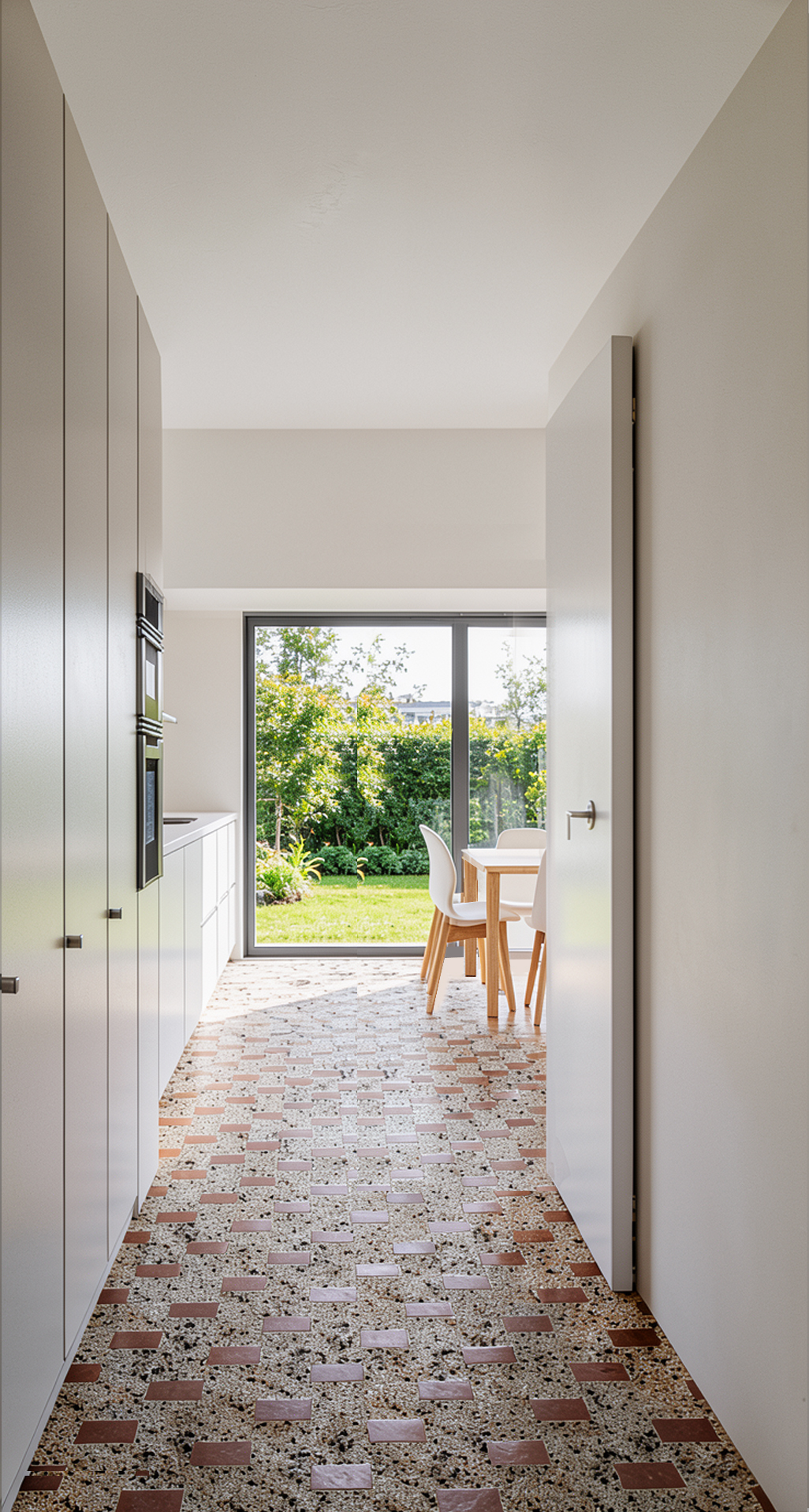 make the image more realistic the legs of the chairs are in light wood the seats of the chairs are white there is a garden outside the window