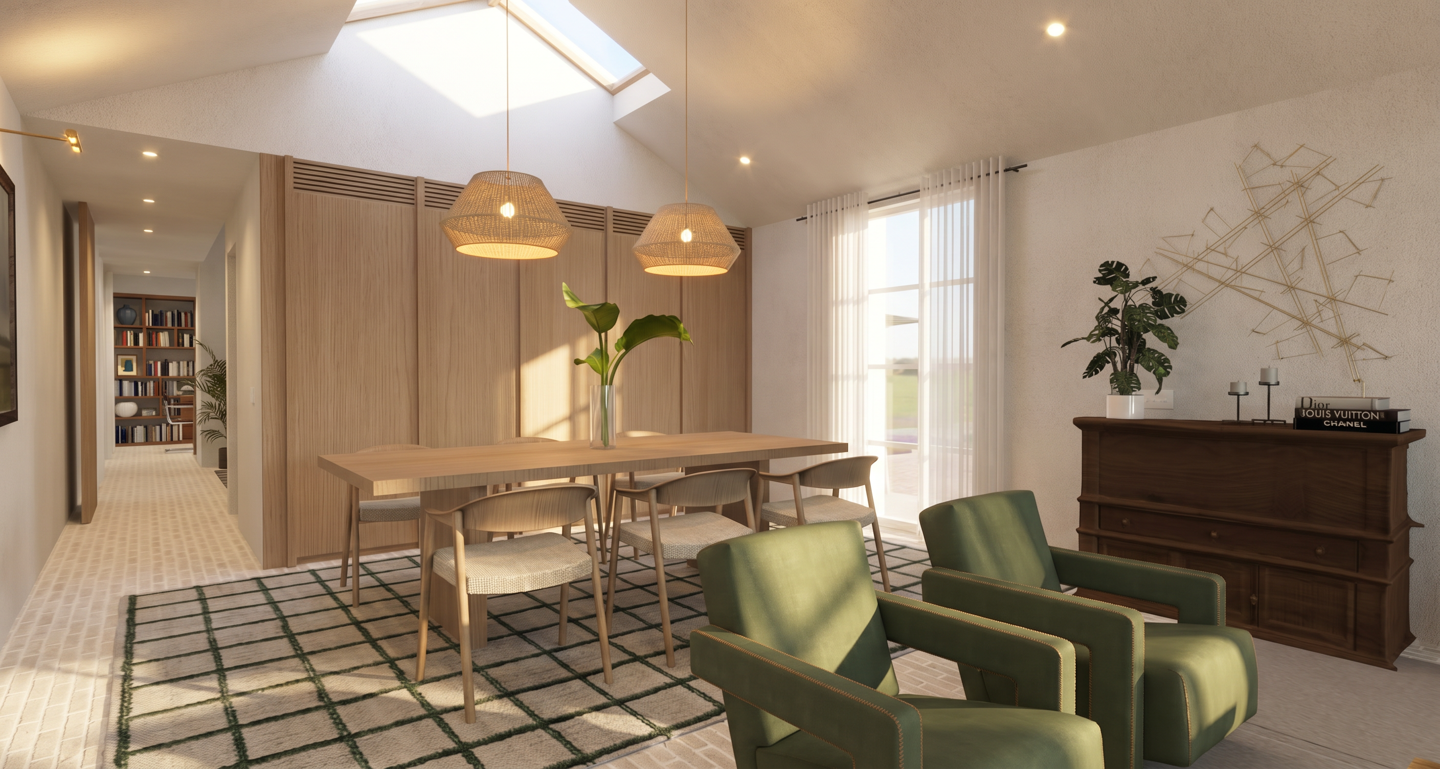 convert this floor plan into a realistic isometric 3d view of a full house show the space from an elevated angle with furniture walls and details visible analyze the provided floor plan walls are shown has white all windows are started from ground level generate the provided auto cad style 2d residential floor plan into a high quality top down 3d isometric true 90 orthographic architectural photorealistic rendering floor plan keeping the exact same dimensions proportions walls doors windows and furniture placement as shown do not change layout scale or orientation flooring light square tile 60cm style interior modern japanese japan with a soft neutral color palette of beige cream and light wood tones parquet in living room and dining room all other rooms and between kitchen island and wall light square tiles 60 cm in rest of rooms light natura warm neutral tones beige off white soft grey minimalist furniture clean lines built in cabinetry stone or microcement surfaces matte black accents furnish the existing rooms in a modern aesthetic elegant interior light soft ambient interior lighting and soft natural daylight with subtle shadows architectural visualisation distortion no added or removed elements keep the tops of the walls cleanly cut and white to show the layout clearly no extra furniture no changes to setup furniture use the same furniture as shows on the plan do not change the orientation of the floorplan