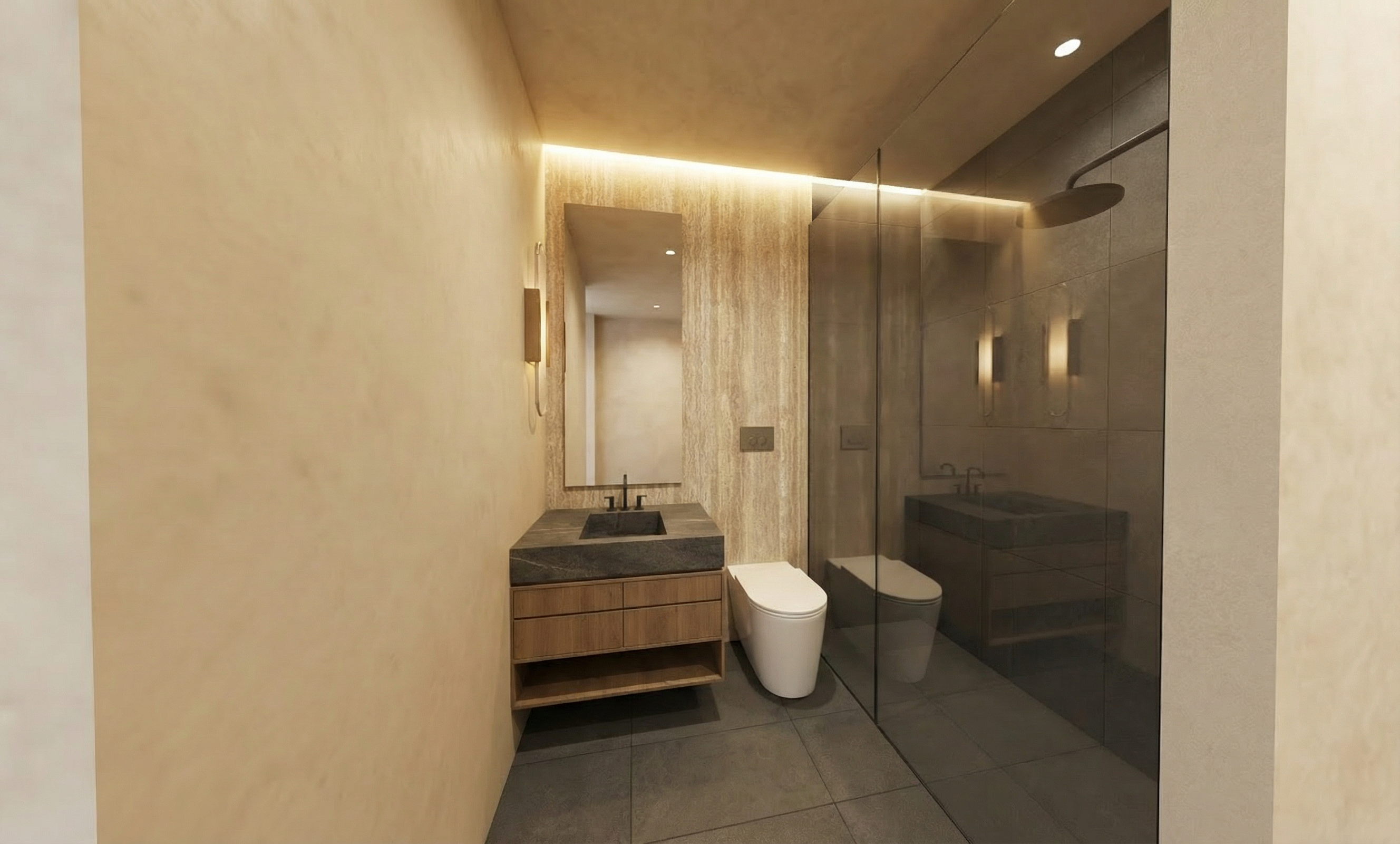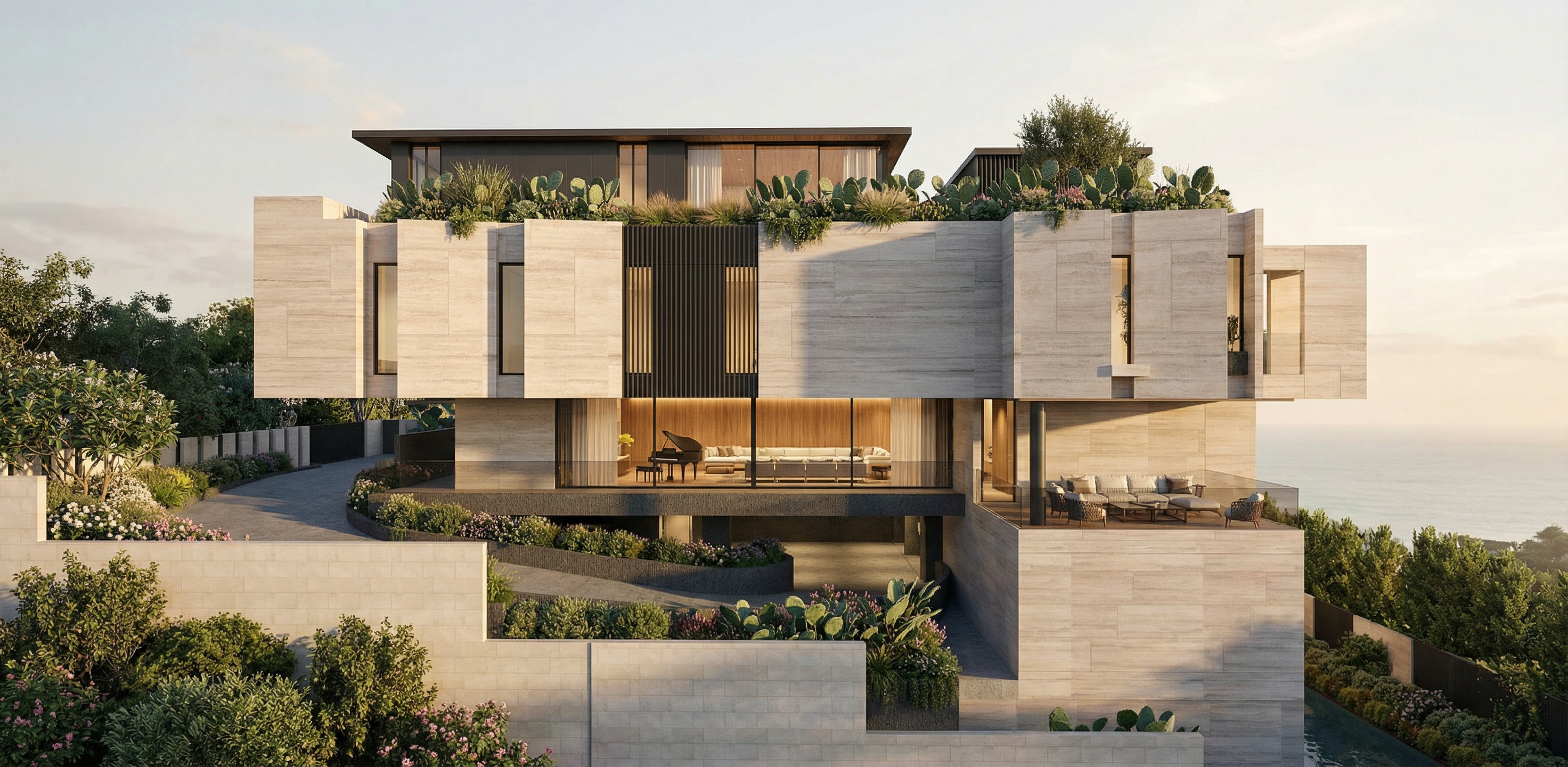 a stunning architectural interior featuring a modern shopping mall emphasize a grand ceiling with cascading white lights for an elegant contemporary look include lush verdant green trees along the walkway design a sleek central pathway with intricate black and white geometric patterns on the floor wooden benches in natural oak provide warmth complementing beige and soft pastel walls for a welcoming feel set the ambiance with soft lighting creating an inviting and luxurious atmosphere add store name and add retail