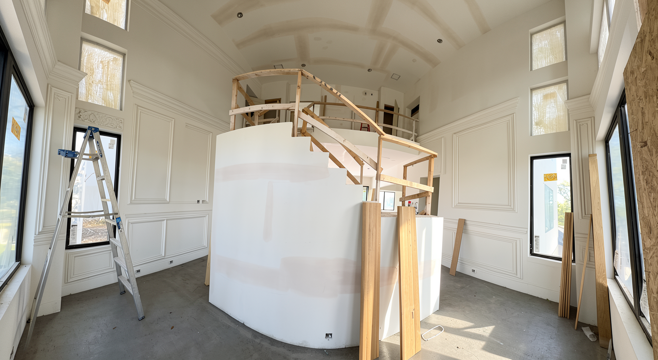 redesign this kitchen with warm brown cabinets and cream colored walls in a water color rendering