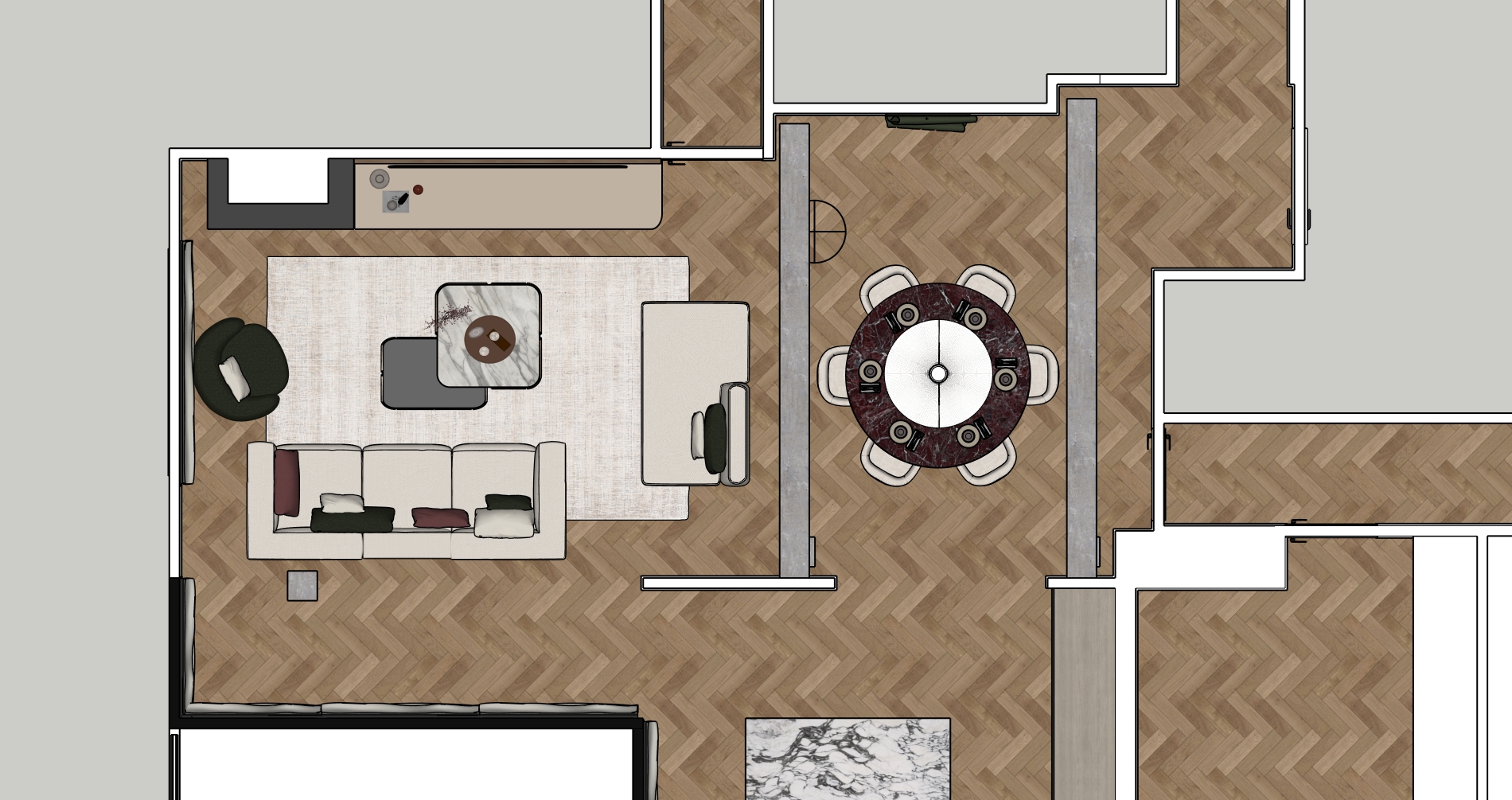 necesito que me crees un plano ilustrado como si fuese una acuarela en base a esta imagen de sketchup quitame la vegetacion hazlo mas oscuro