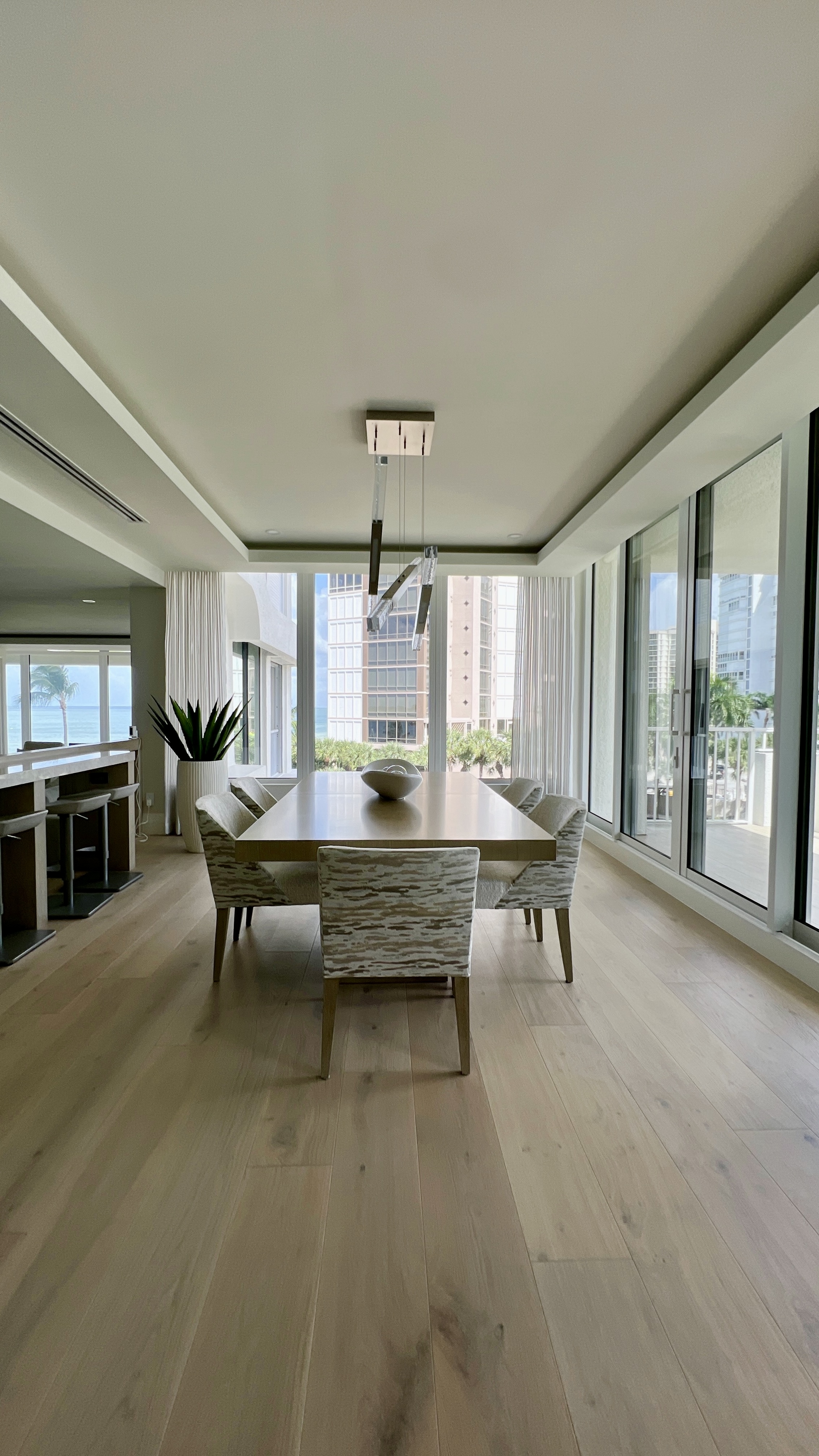 make this look editorial fix the angle and add an ocean view through the windows refined textures natural ambient lighting architectural depth soft shadows balanced proportions high end naples interior design style elegant and calm mood keep the exact geometry layout and design of the original image only upgrade materials lighting texture and realism render with an editorial sophisticated serene and high end aesthetic consistent with j lynn design group shot with natural soft daylight clean highlights subtle reflections realistic shadow depth and a 35mm interior lens feel fine grained detail micro shadows natural depth of field soft lens falloff true material reflection warm ambient occlusion museum quality lighting maintain exact structure silhouette and spacing from the original wall design add an ocean view trough the window remove glares