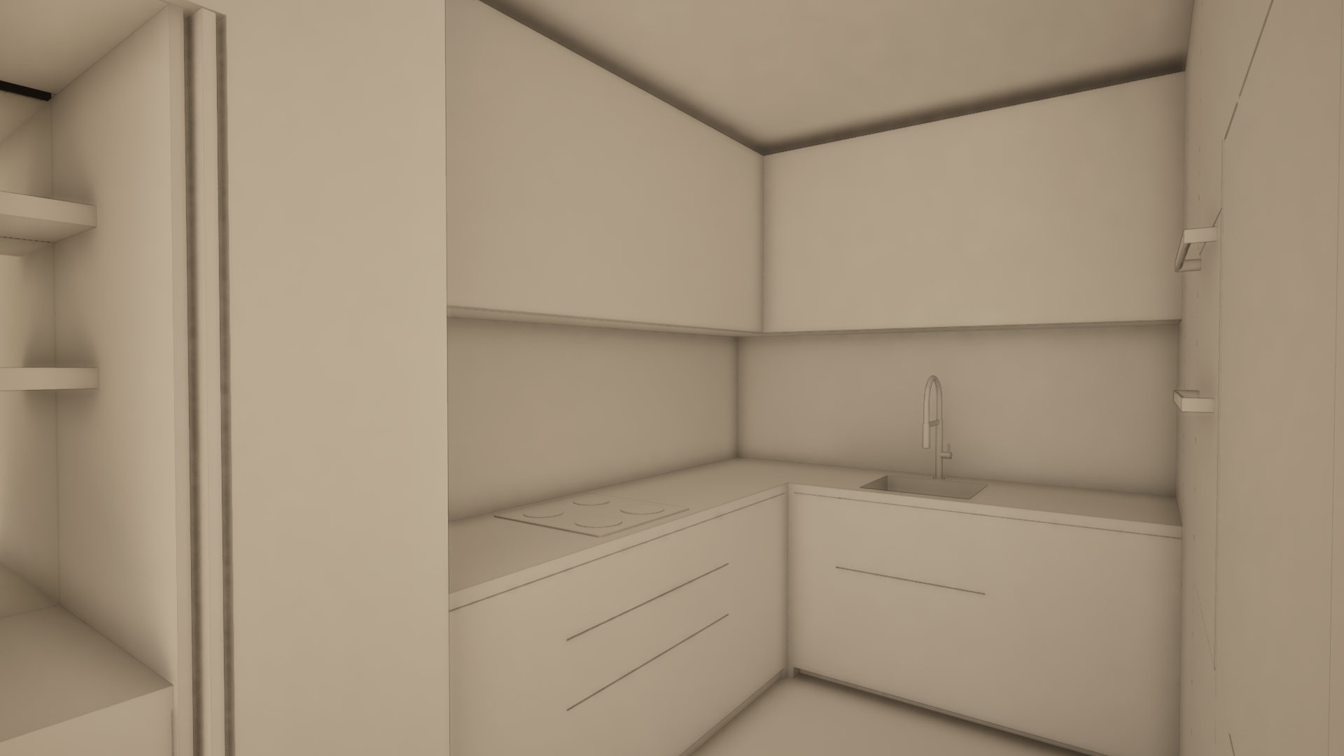 exterior shot make realistic kitchen add soft shadows and stage the space