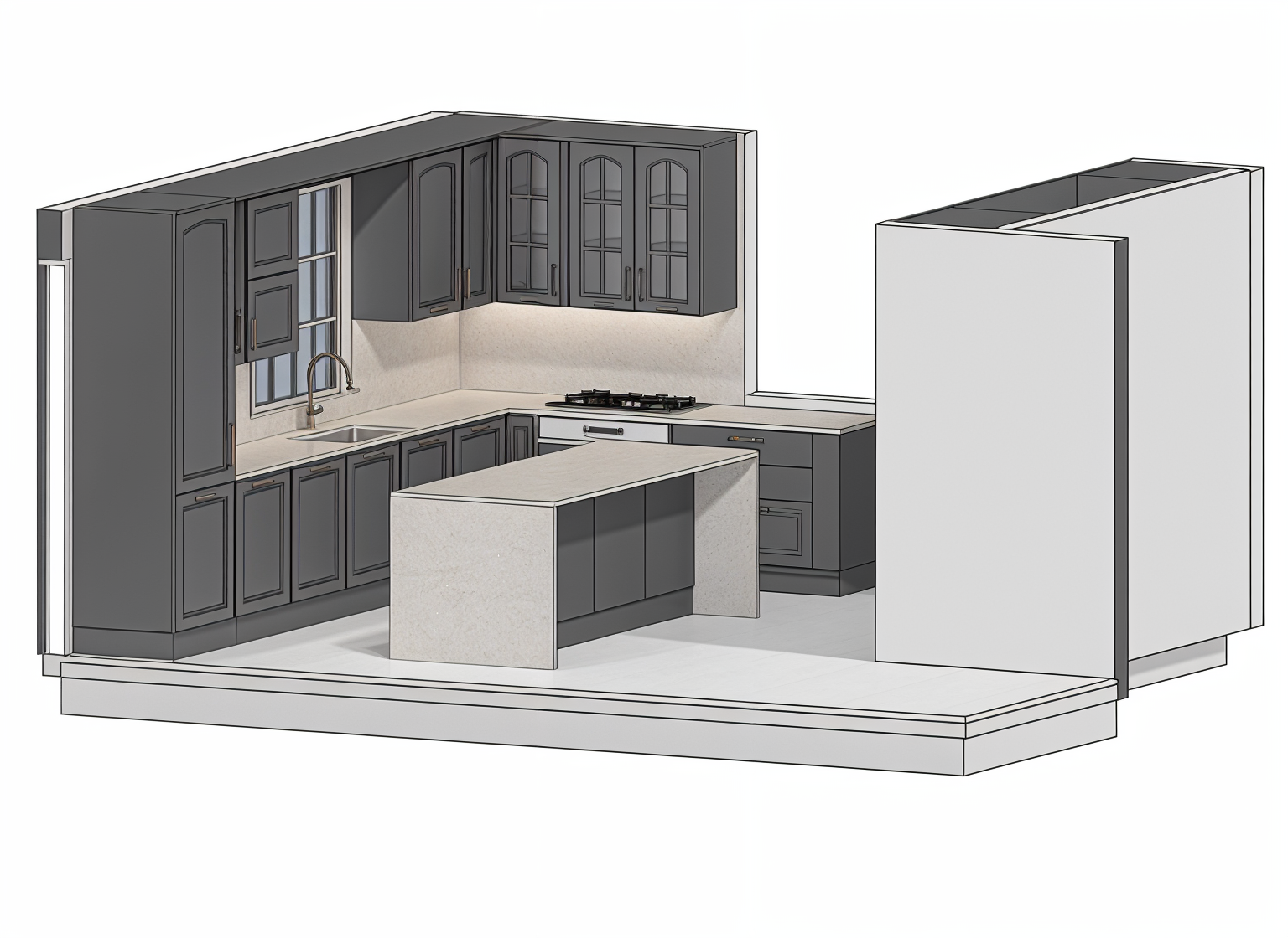 hyper realistic architectural wall assembly cutaway clean vertical wall section revealing pressure treated wood studs batt insulation between studs continuous polyethylene vapor barrier drywall panels on interior face drywall tape and joint compound at seams smooth finished drywall surface metal corner bead at exposed edge electrical wiring routed through studs standard electrical outlet box mounted within the wall sharp precise cut edges physically accurate material textures correct layer thicknesses neutral natural lighting professional photo real architectural visualization