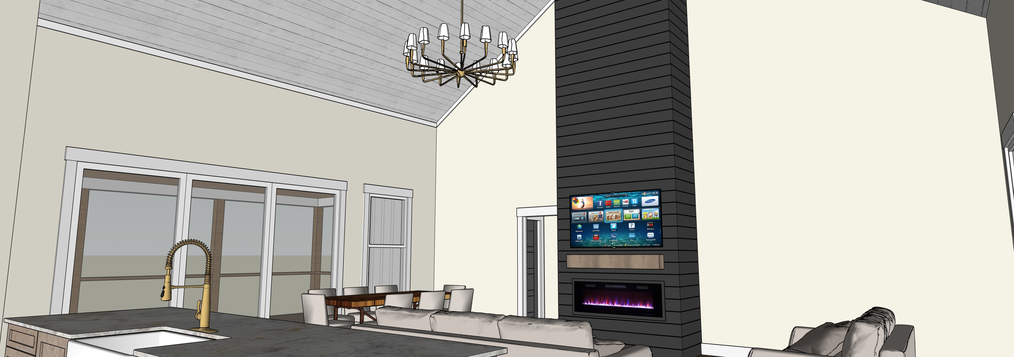all walls painted sherwin williams alabaster fireplace to be painted iron ore add decor wooded background make realistic add lighting to cans and fixture