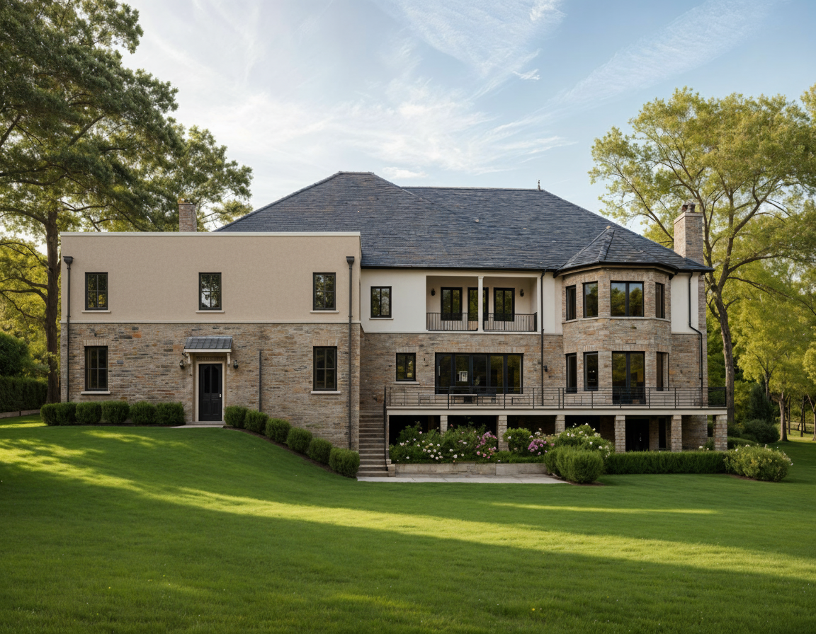 modernist exterior shot industrial coworking space wooden details white walls concrete floor light ambience architecture