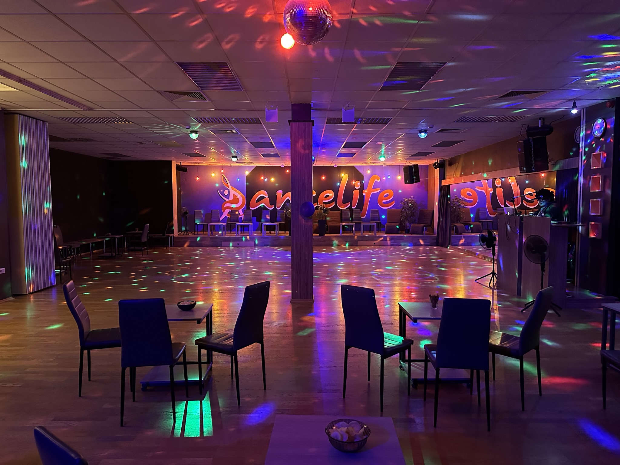 keep everything like it is just remove the coloumn in the middle also keep the sign dancelife on the wall