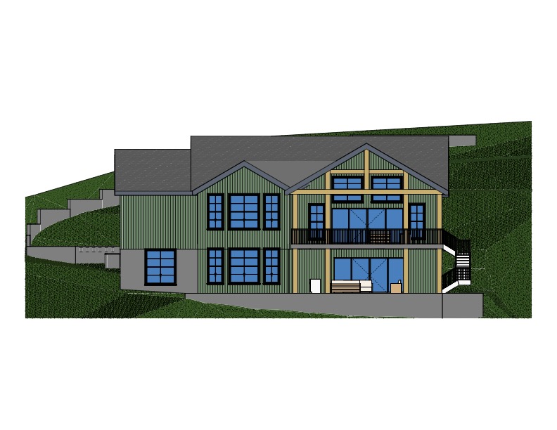 design a modern lakefront home for a wooded waterfront lot on lake martin alabama the home should be 4 000 square feet with large windows facing the water warm natural materials and a clean contemporary southern lakehouse style include a mix of stone and wood on the exterior a metal roof and wide covered porches that blend indoor and outdoor living the design should feature an open living space with vaulted ceilings a large kitchen a lakeside primary suite and plenty of natural light show outdoor spaces like a screened porch fire pit area and gentle steps leading toward the water emphasize a comfortable inviting feel that fits the lake martin environment