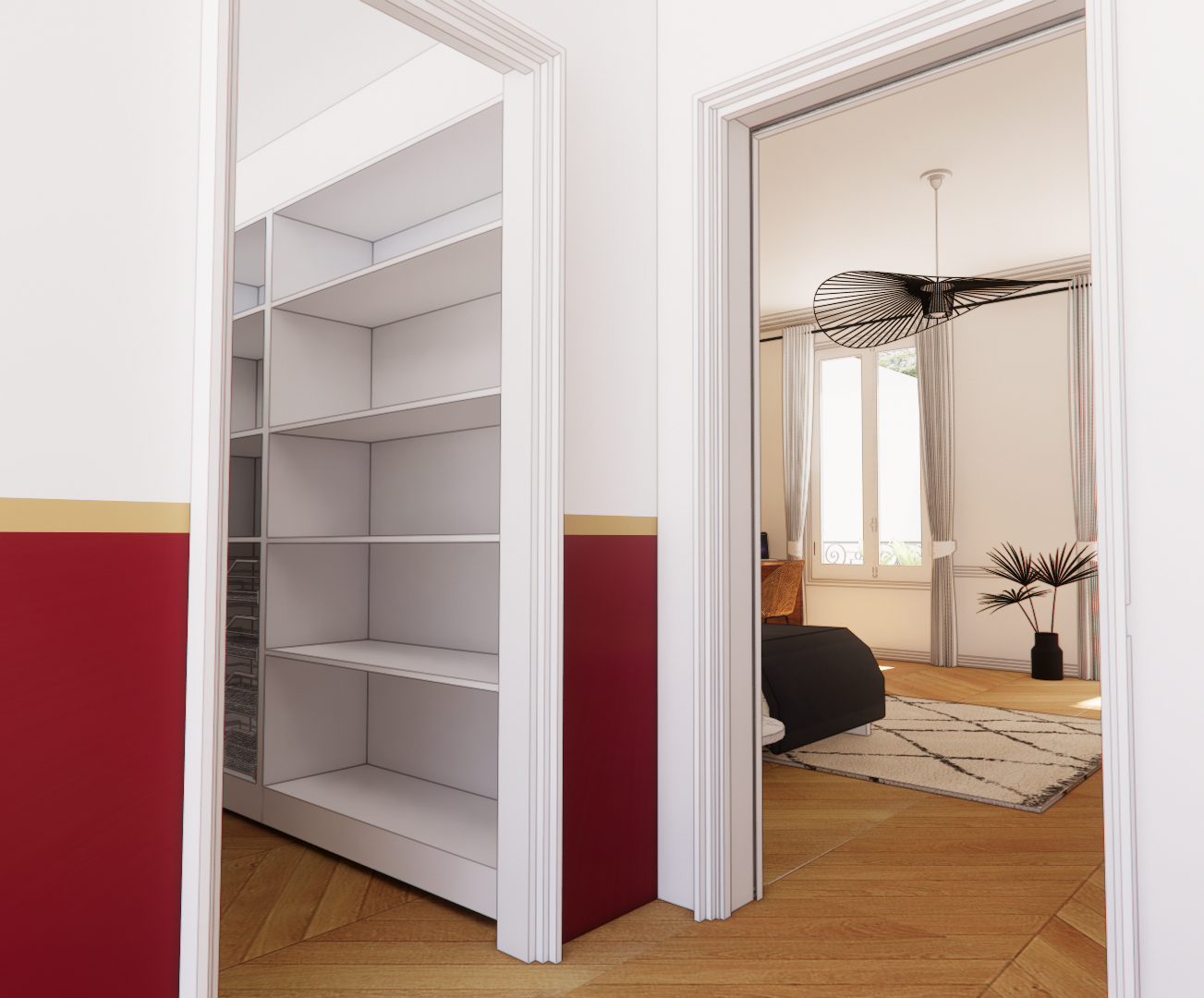put some clothes on the dressing on the left