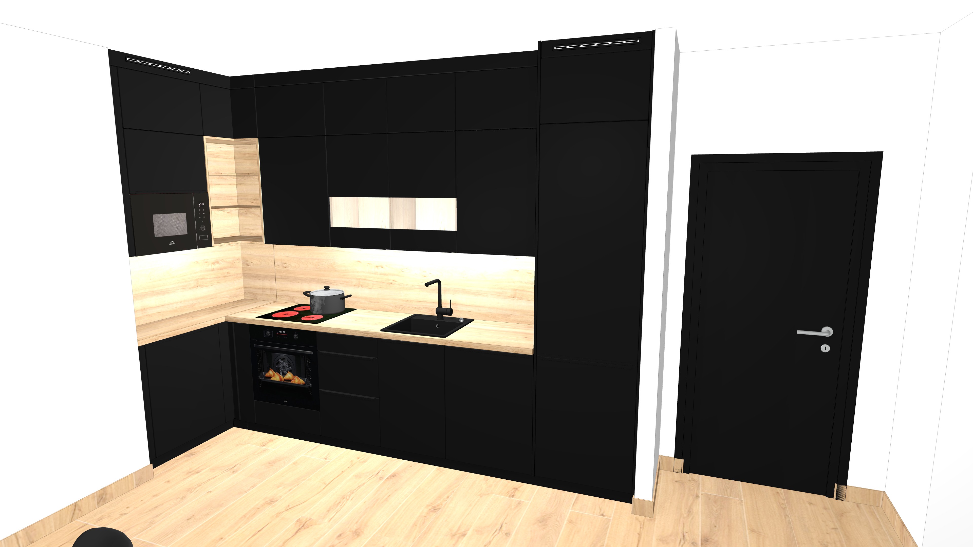 lighting refinement only on the uploaded image strict color material lock do not change colors tones saturation materials textures or furniture in any way all cabinet fronts wood surfaces countertops and floors must remain pixel identical to the input image improve lighting realism only natural daylight balance realistic soft shadows correct global illumination subtle reflections balanced contrast and exposure no realism enhancement beyond lighting no style change no redesign interior photography lighting neutral white balance high end real estate photo look add only a few subtle realistic accessories if appropriate a small ceramic bowl a minimal plant a wooden cutting board no color grading no white balance shift on furniture no material enhancement no texture enhancement no warmth or coolness changes no style transfer no object addition no design modification make the image 4k resolution
