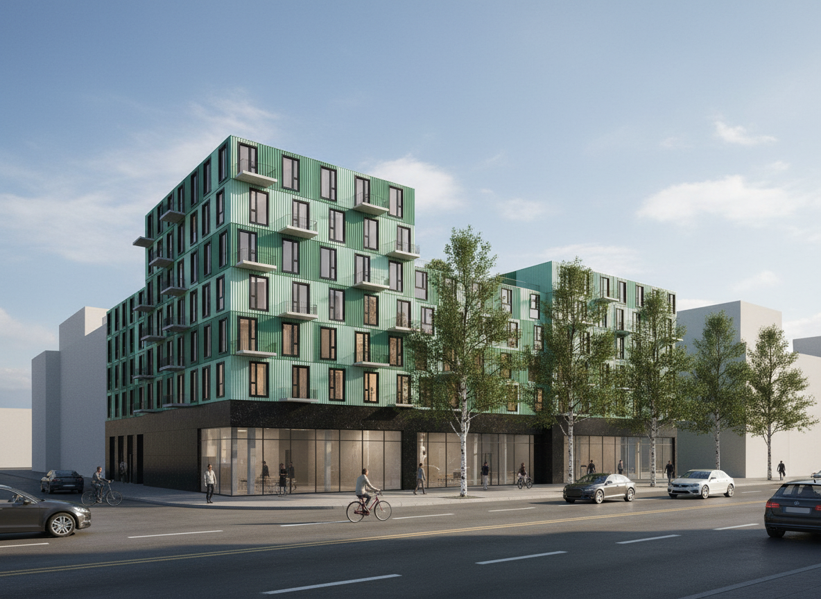 morning sunlight from window soft illumination no door handles glossy quartz counter top and backsplash black and white floor tiles