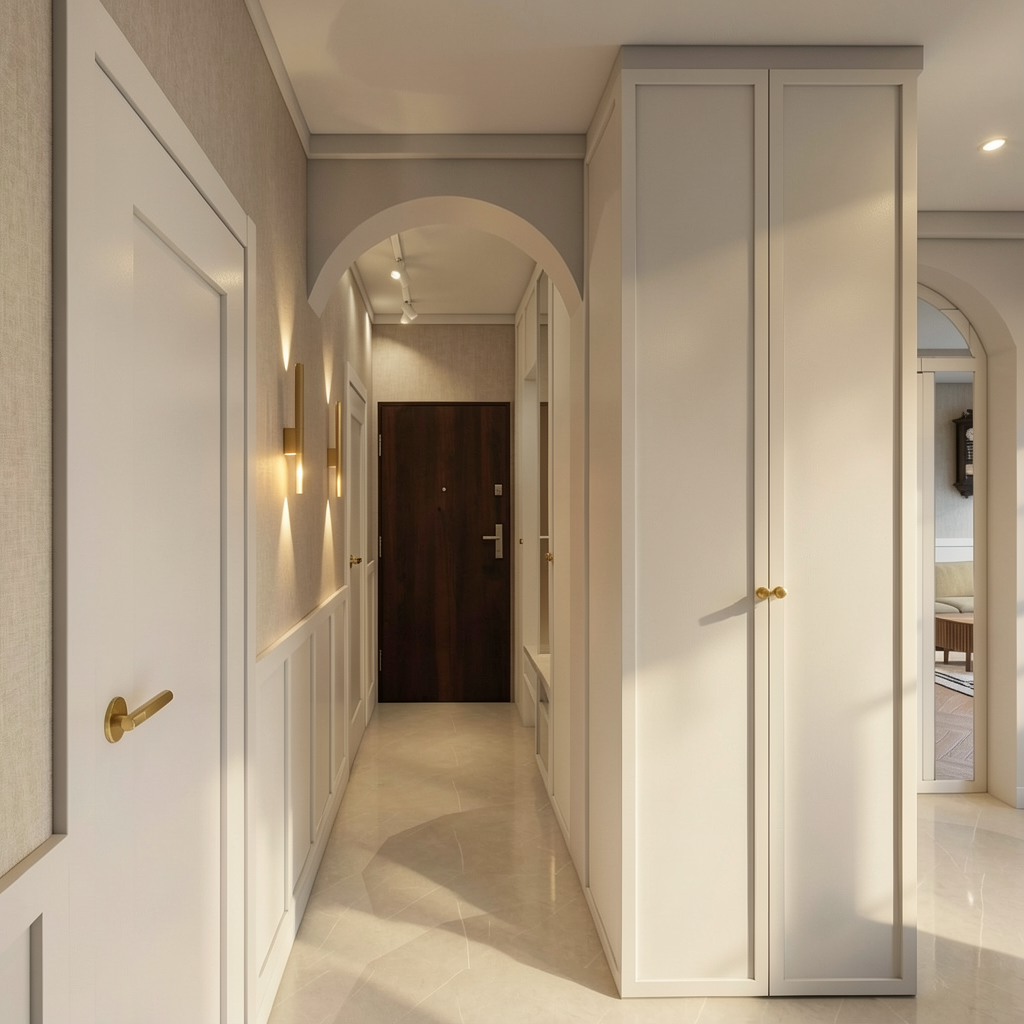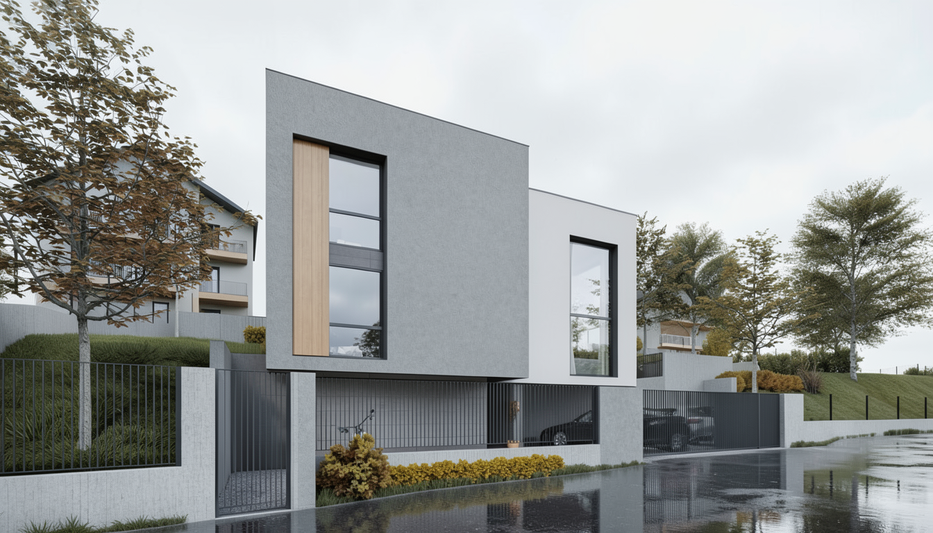 house should be white with a light brown roof bronze coastal sconces white garage doors and a dark brown wood front door