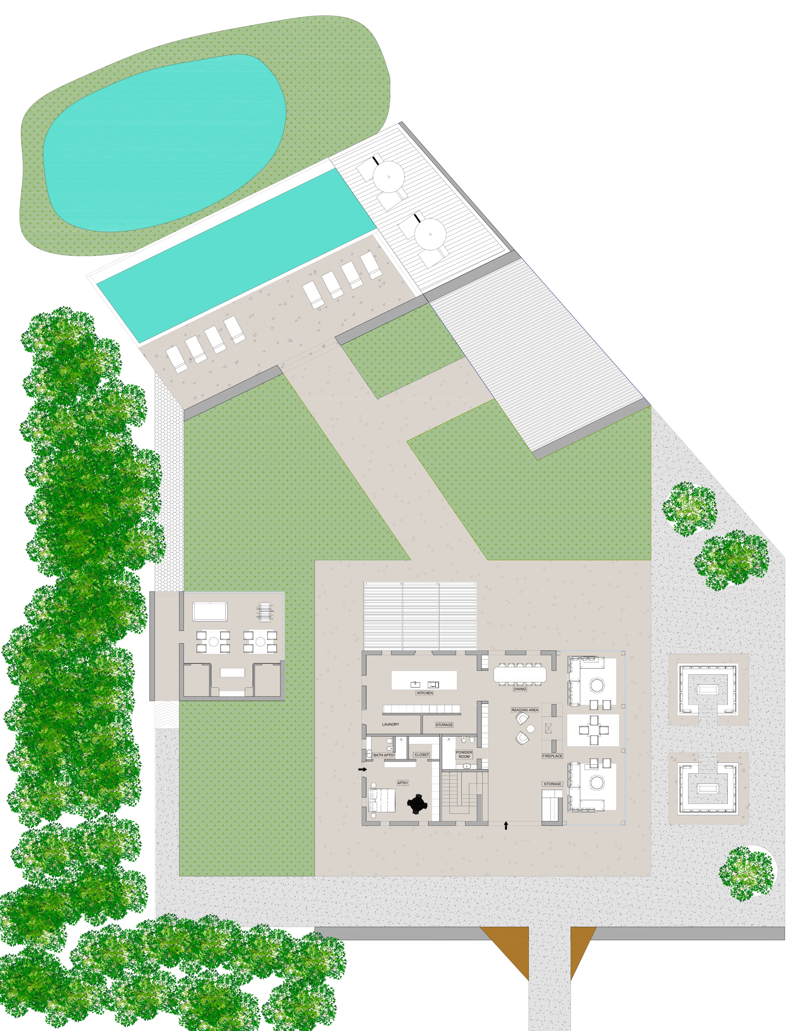exterior shot don t change anything of the cad plan don t change furnitures don t add elements only change the style