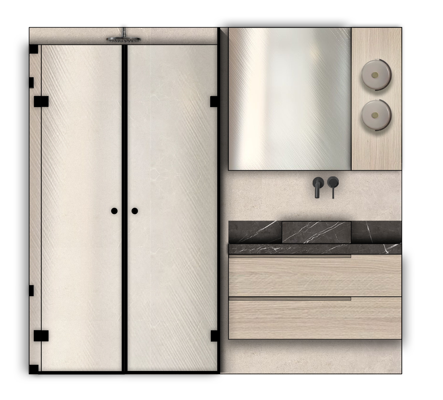 realistic modern bathroom front view keep exatly the same color and geomatery