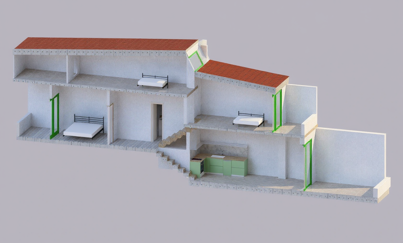 use the original architecture geometry camera angle background and interior layout exactly as shown in the input image do not add remove shift or reinterpret any elements in the building or landscape keep all window sizes openings roof geometry proportions and spatial relationships untouched keep the pool terrace furniture positions and plantings unchanged inside the left room there is a bedroom with a bed and a freestanding bathtub keep it exactly as it is inside the middle room there is only one armchair keep the room otherwise empty behind the large glass fa ade on the right is an empty room with a light wooden floor do not add anything to this space do not change the floor plan do not add background buildings and do not fill any rooms apply a refined ultra minimalist aesthetic inspired by contemporary high end residential architecture thin black aluminum window frames smooth white plaster surfaces warm natural materials soft daylight clean reflections subtle shadows improved realism and texture quality enhance materials and lighting only keep the full scene composition unchanged architecture