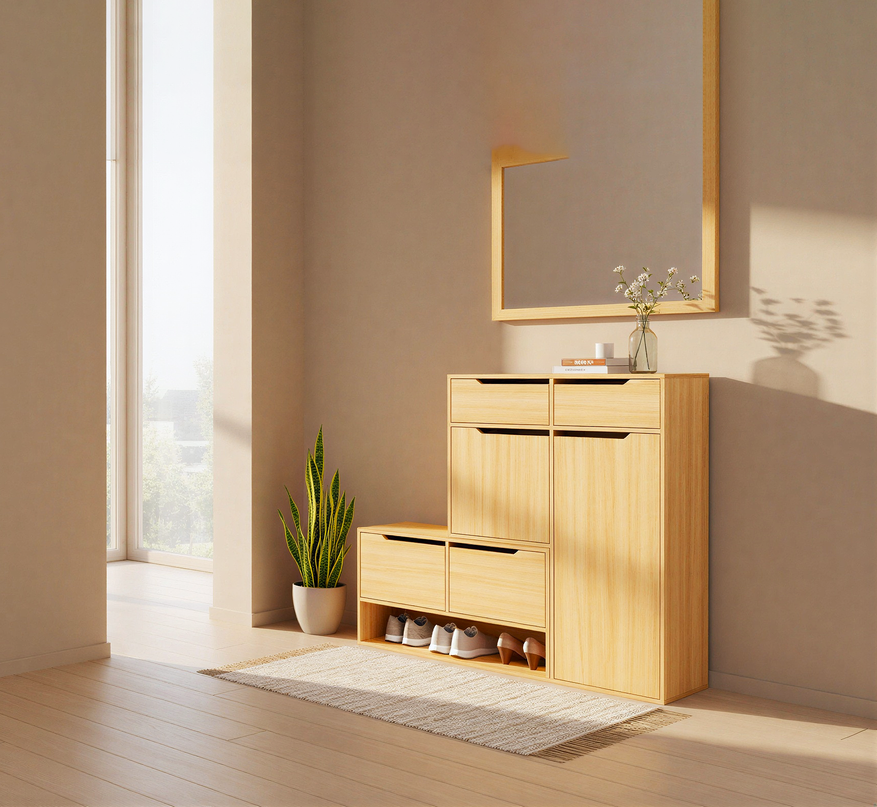 just correct the mirror don t alter the design or angle of the shoe cabinet