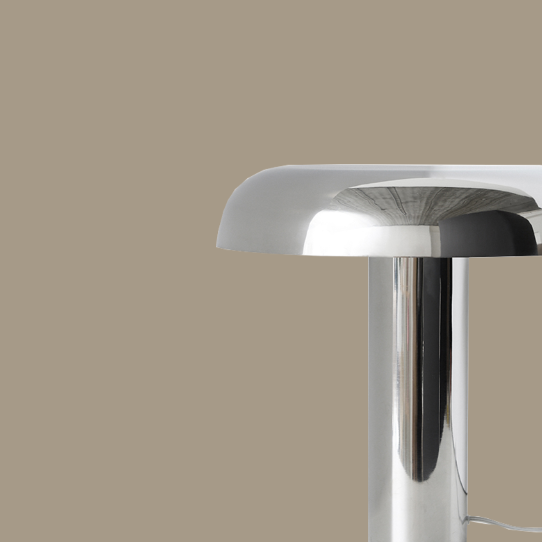 ad light in the lamp creating shadows on the brown wall