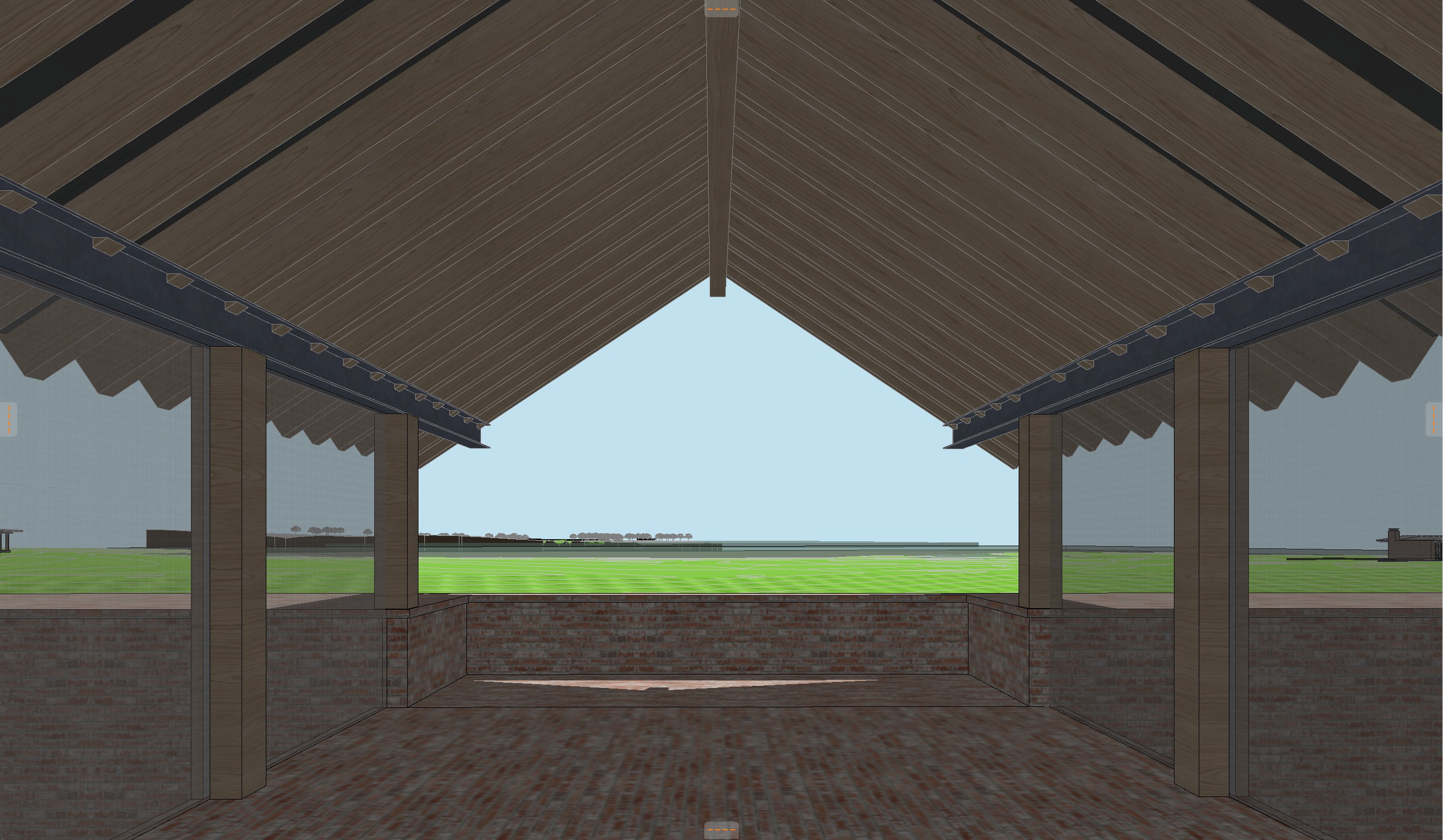 antique brick house with timber columns steel beams bug screen windows reclaimed pine soffit wild lousiana grasses and vibrant wildflowers lead to the shoreline of a large lake surrounded by yellow pine trees in the background clouds in the sky
