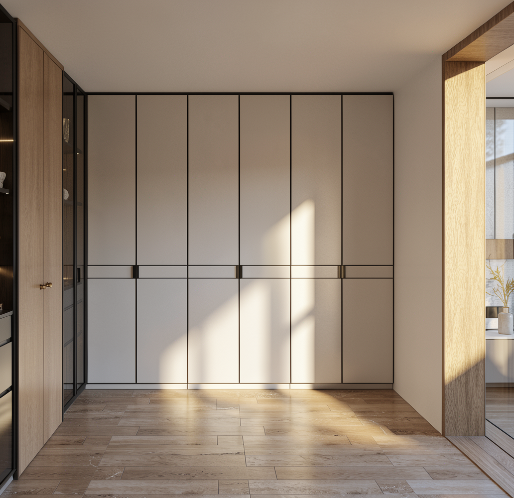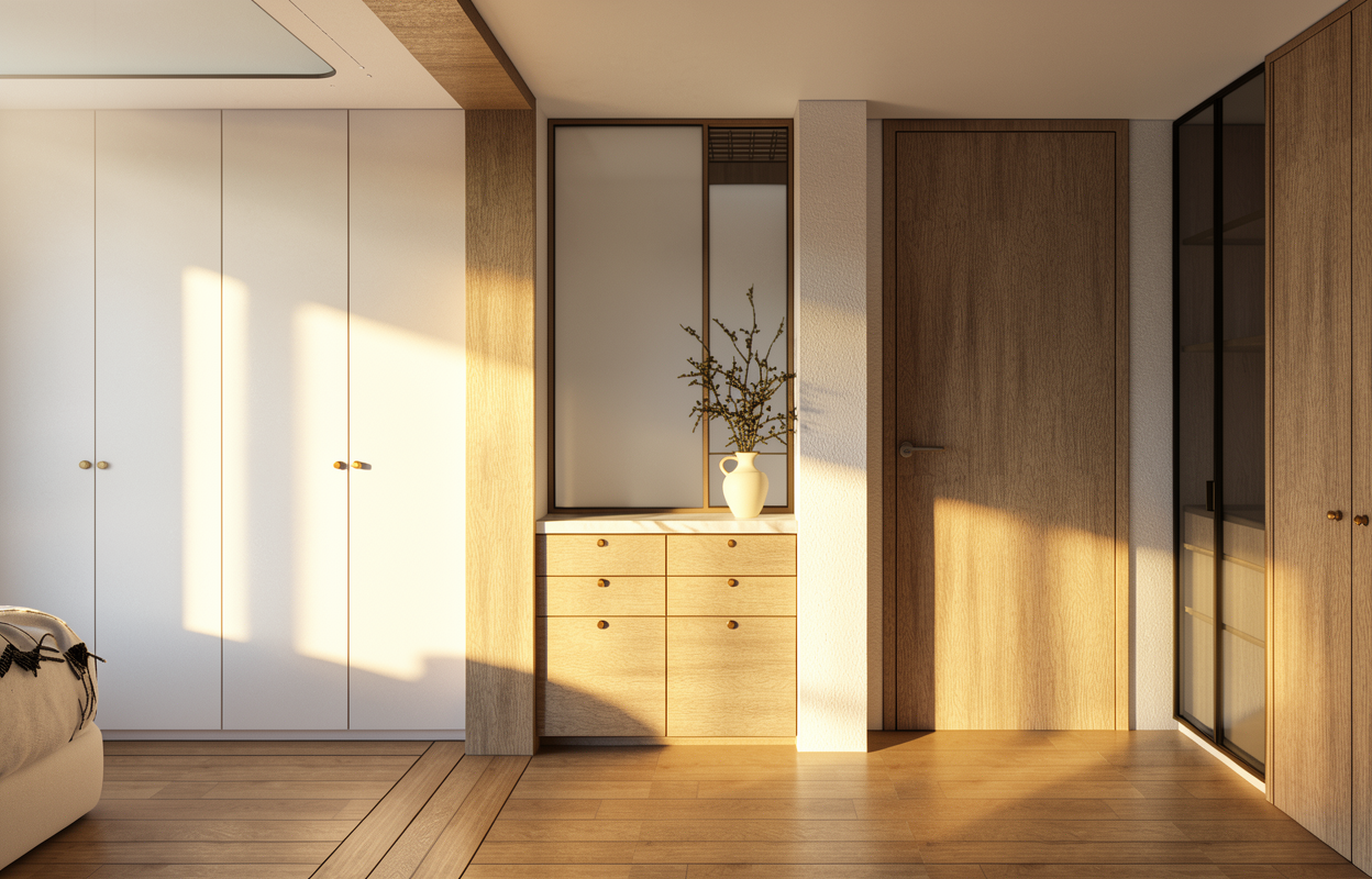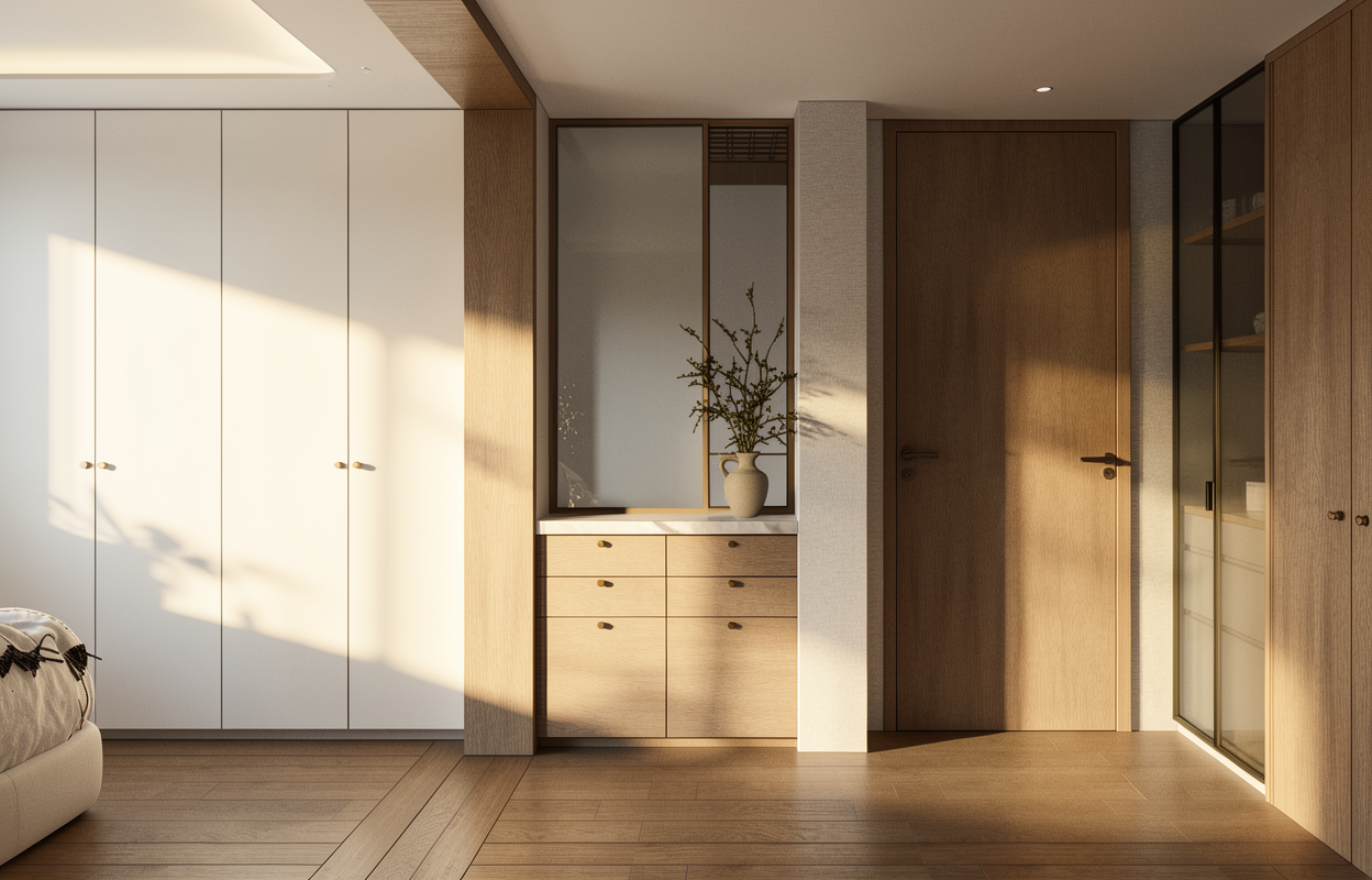 exterior shot make the interior of living room apply the mood board maintain the door window shape and room size