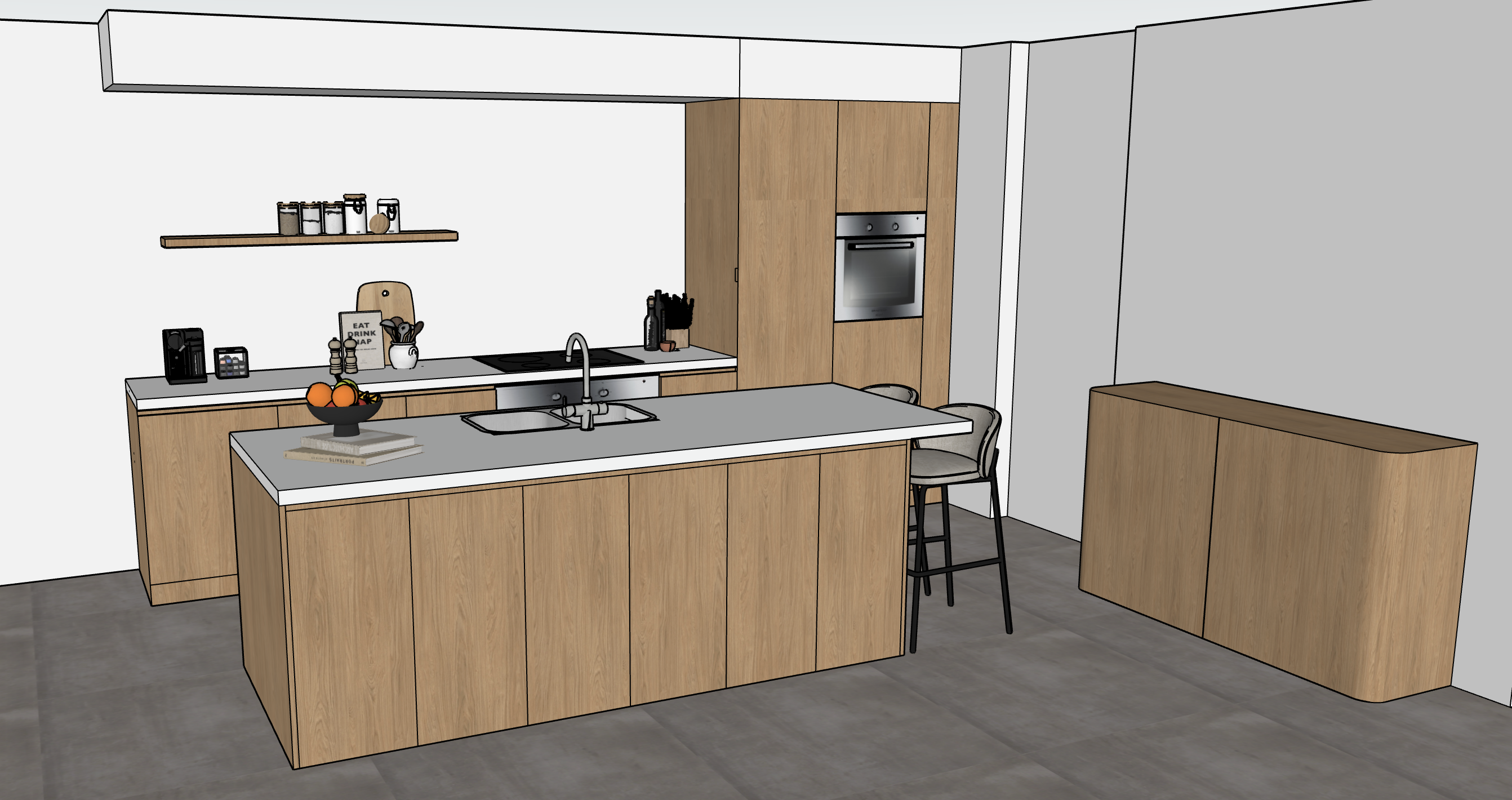 keep the materials and textures that are here keep all the lining and division that is present