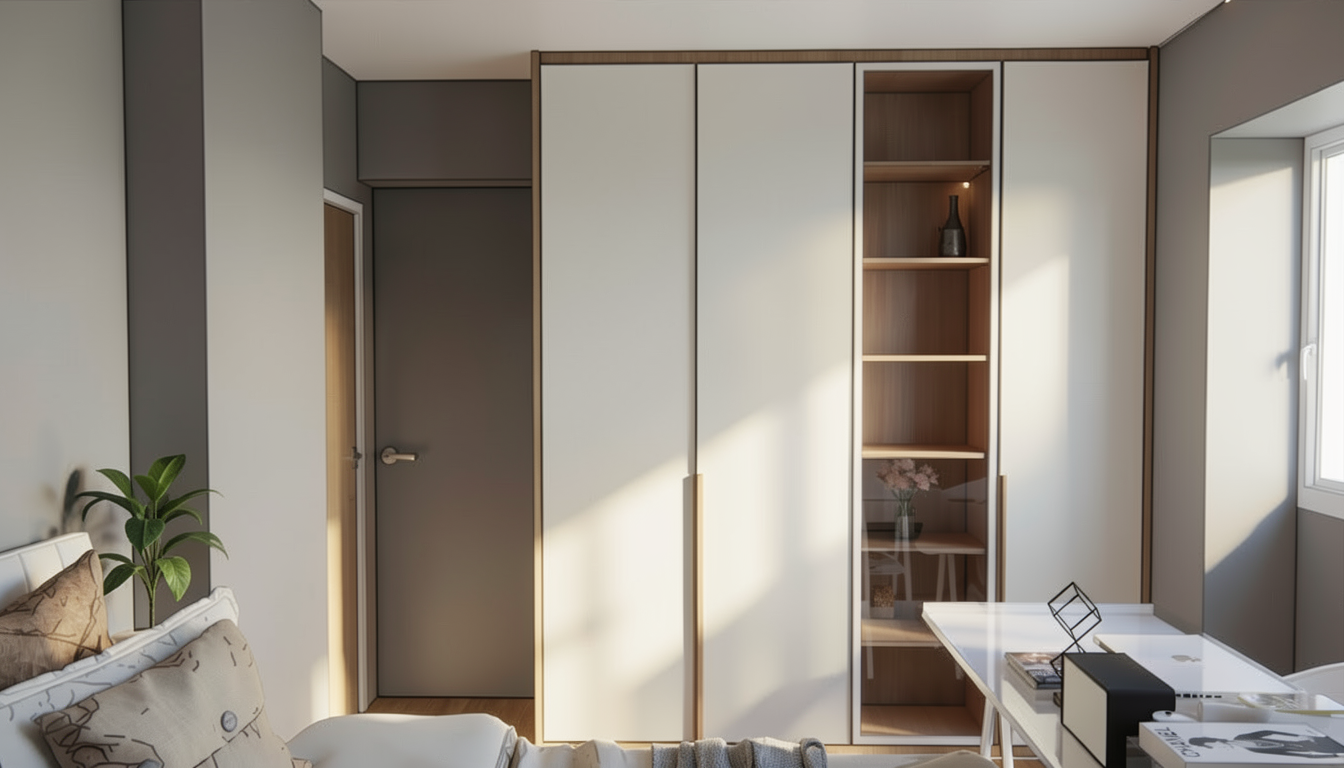 make this rendering into a real photo preserve the material colors patterns scale and dimensions don t change any geometry don t change any colors unless specified include micro detail finishes add a small oval fluffy dark red rug in front of the tub add a towel hook in polished nickel to the right side of the wall behind the tub and place a red silk robe on it make the sliding in a medium brown wood add 2 recessed cans where the lights are located keep the ceiling the same color upper portion of the wall behind the tub update the wall behind the shower to match the paint color of the ceiling and upper portion of the wall behind the tub