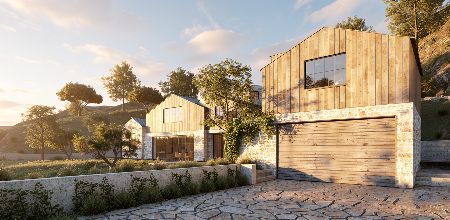 lights on in interior kids playing in grass car parked in driveway