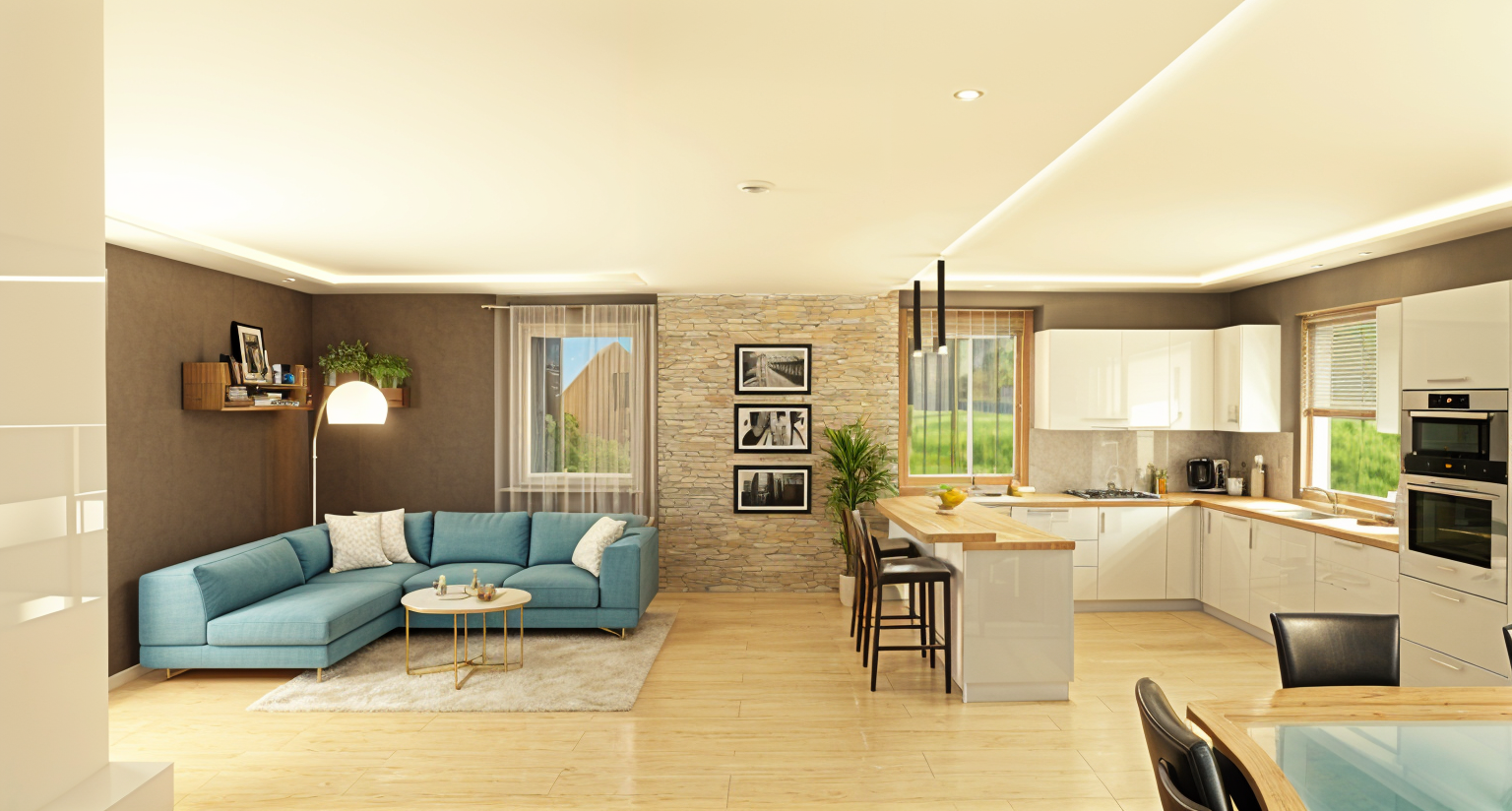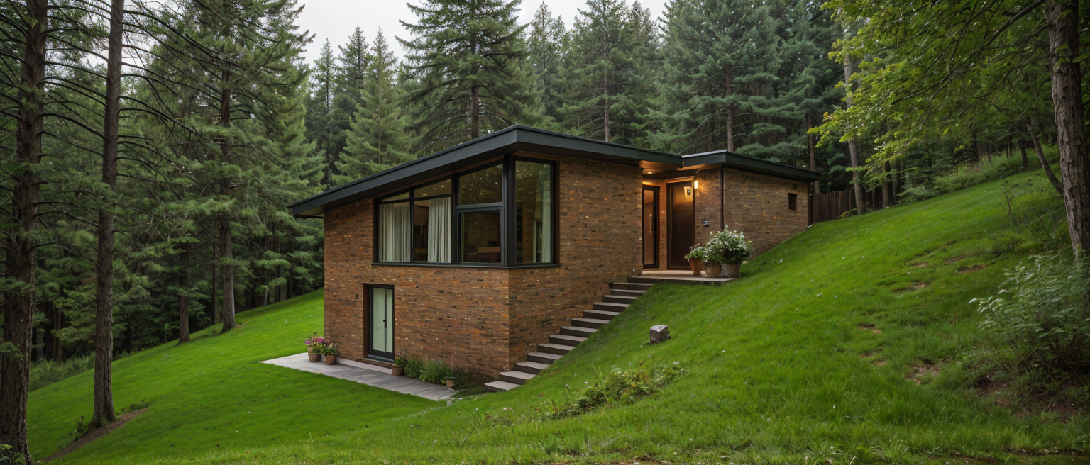 add front yard with landscaping sage green siding black shingles dark grey trim sunny sky background add person at the front door dark grey trim