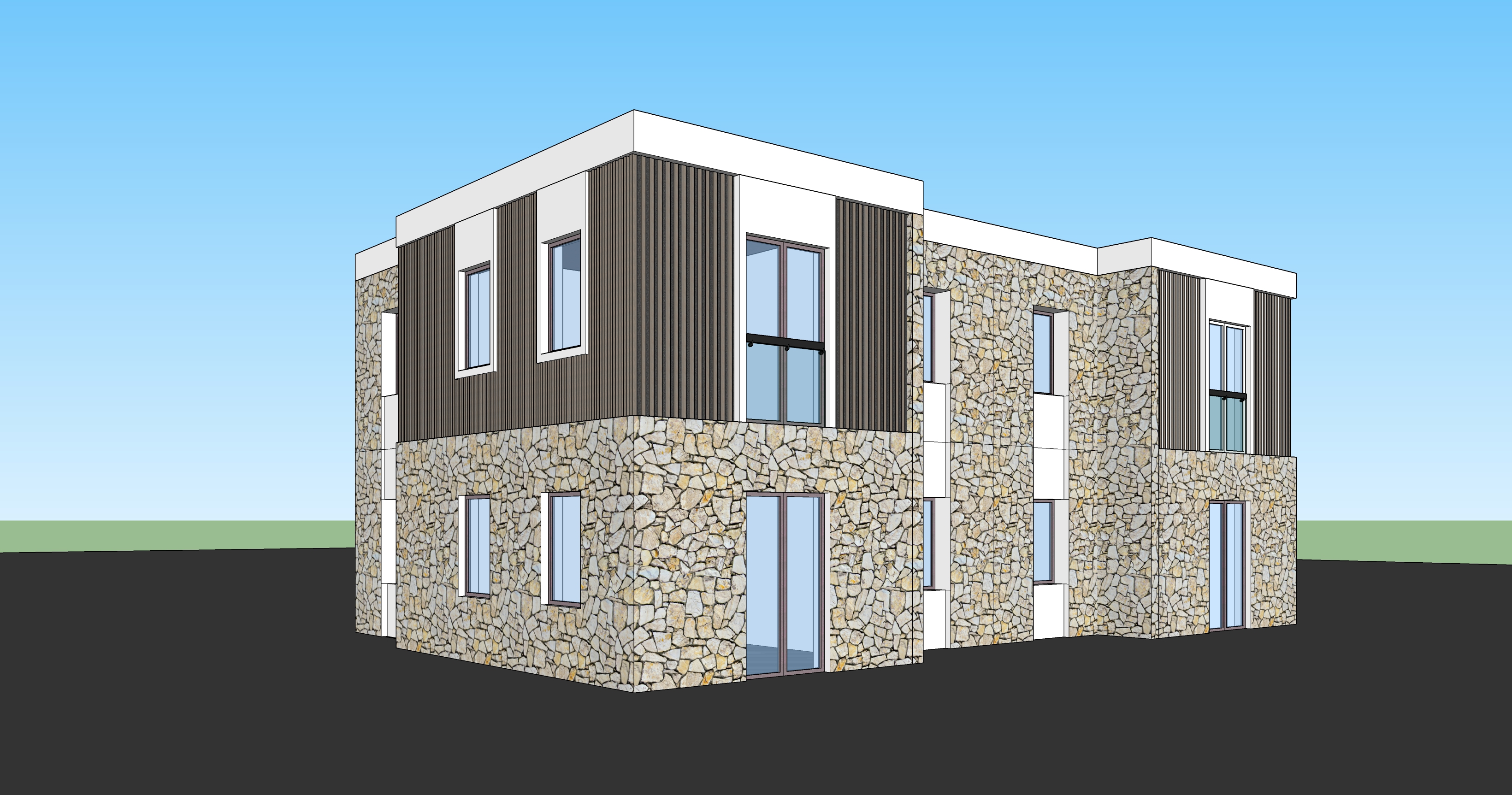 stone textures more modern and dark color and the wood is must be more modern the house in city place there are some people around