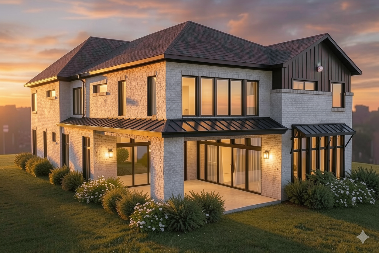 a black concrete ceiling arched copper light fixtures soft and warm light a concrete wall with a black mural depicting a jellyfish a long upholstered black leather seat with back lighting directed at the wall ambient effect the bar counter is made of hammered copper the bar front is made of a fine black mosaic composed of small circles copper cabinetry above the bar is made of perforated sheet metal a modern elegant restaurant with an industrial touch in the background an olive tree in a black pot outside the window a view of the streets of gdansk s old town