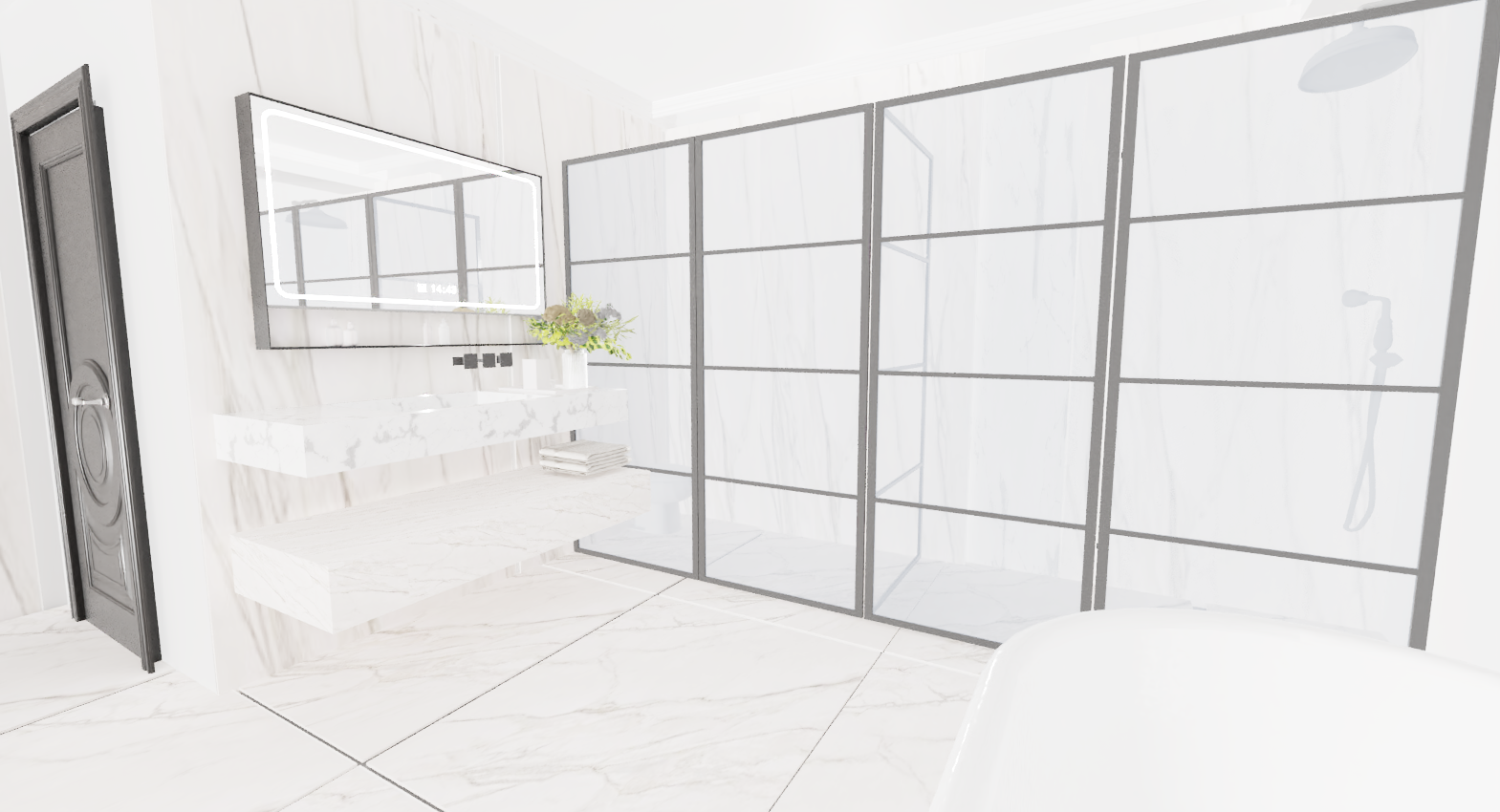 delete horizomtal grids from the shower door delete showers fixture in the left partf