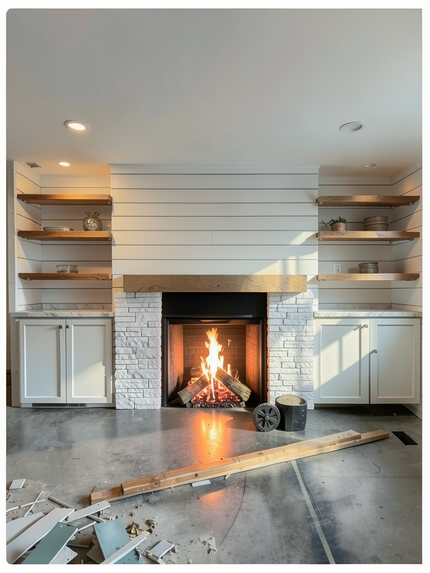 white siding black roof cedar brackets wisconsin woods backdrop with a sunset glow on the face of the home and sky