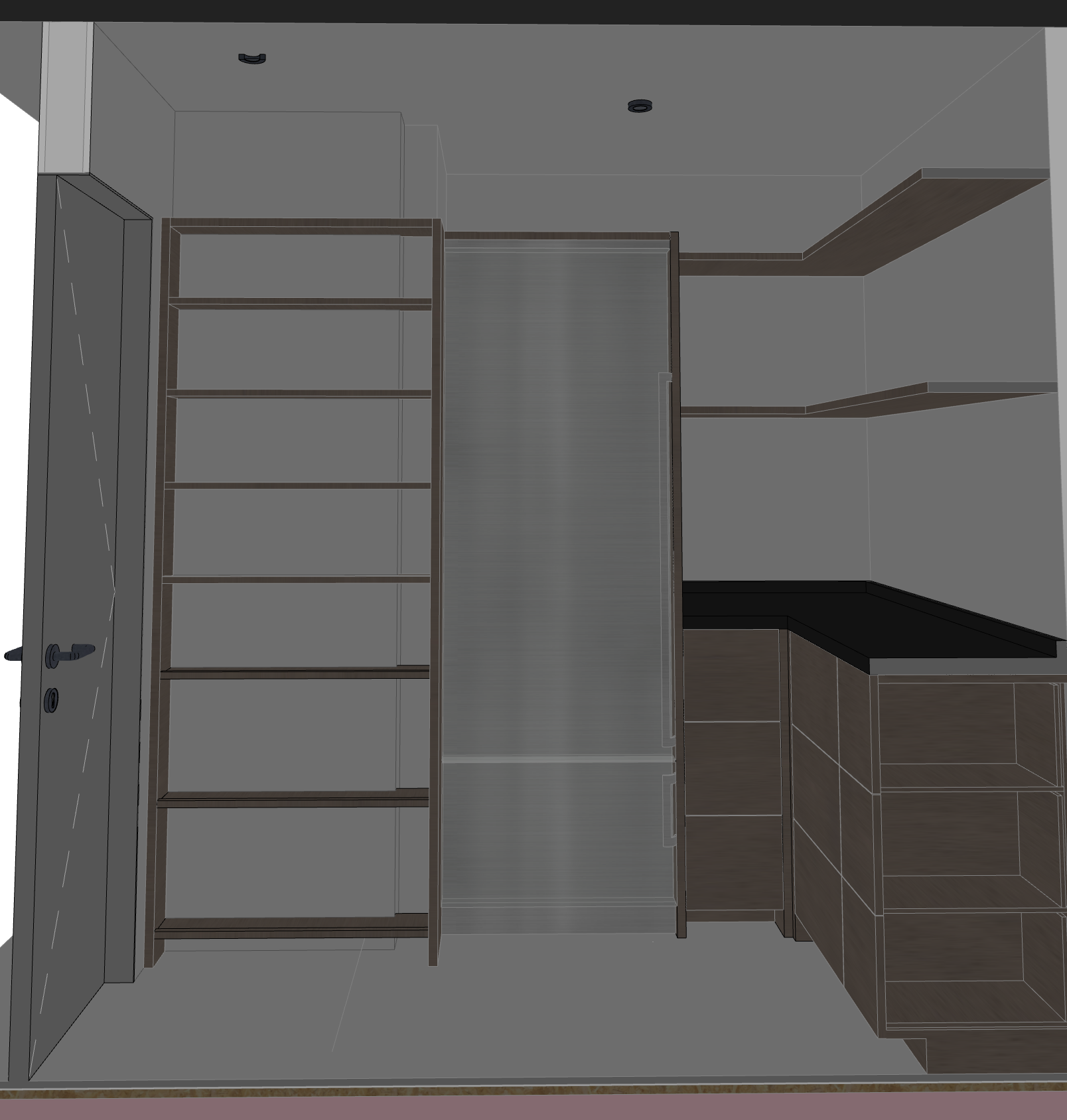whitewashed white oak shelves wood floors butcher block countertop add elements that would be in a pantry
