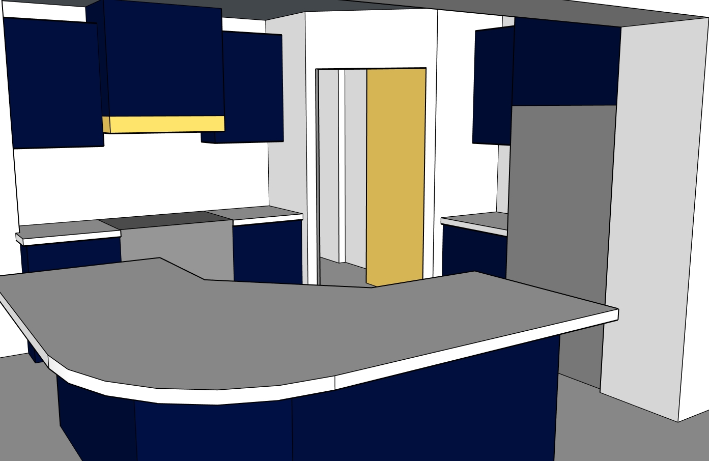 gray color should be stainless steel appliances blue color are dark blue stained cabinets orange is a light finished maple carrera mable counter tops