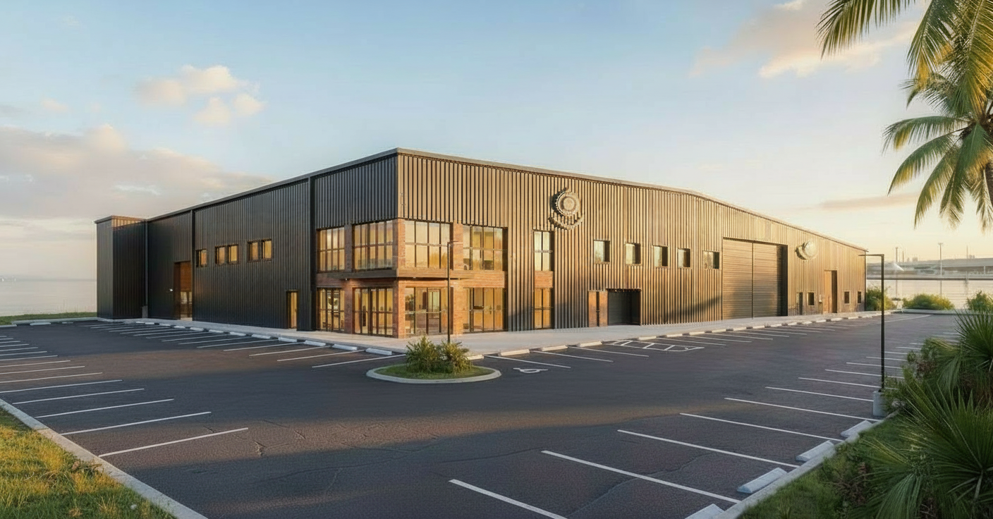 on the left side of the parking lot extend the parking lot around the back of the building