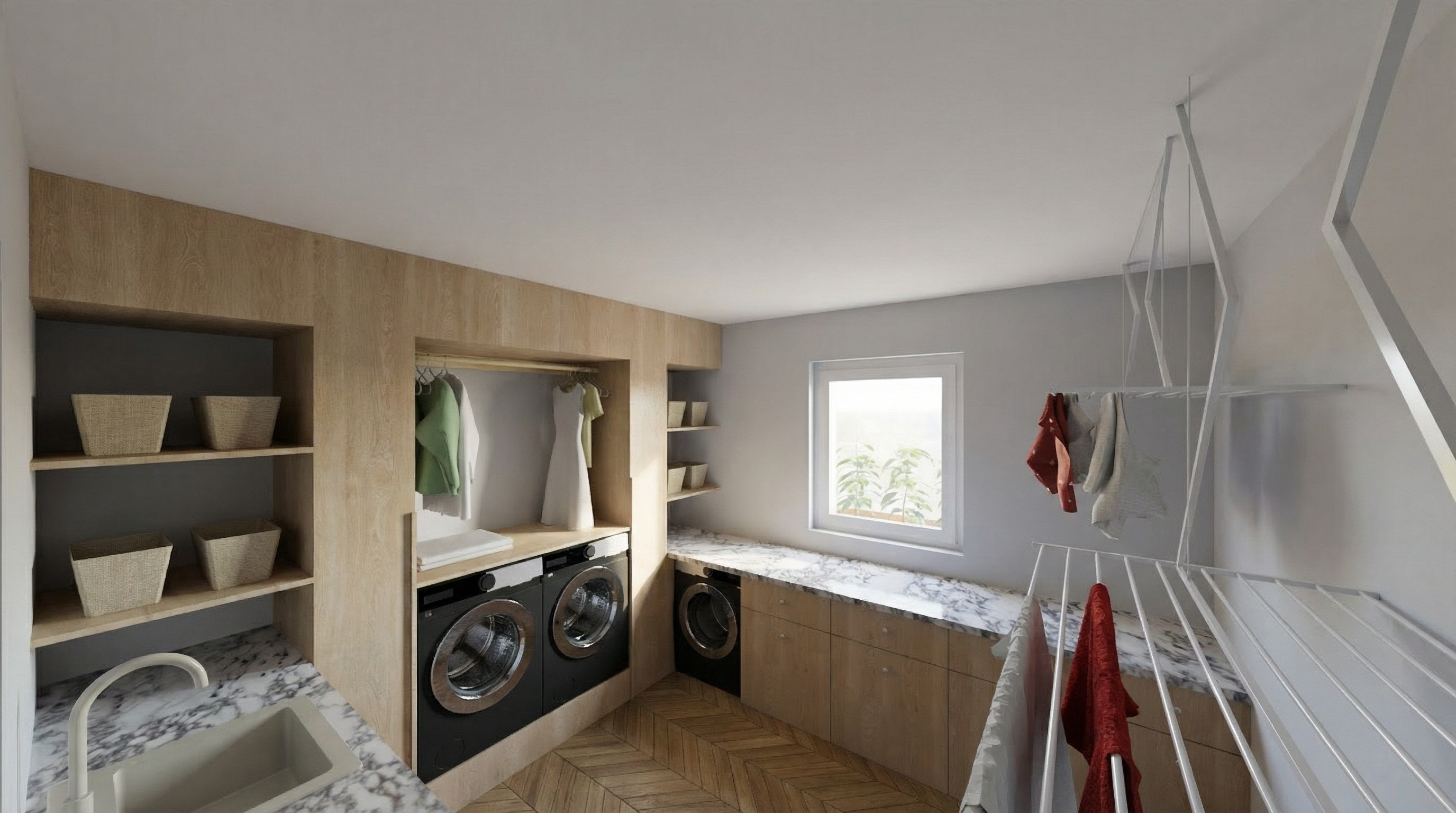 convert this floor plan into a realistic isometric 3d view of a full house show the space from an elevated angle with furniture walls and details visible erstelle ein fotorealistisches 3d rendering eines dachgeschoss grundrisses basierend exakt auf der bereitgestellten vorlage der grundriss die raumaufteilung sowie alle eingezeichneten m bel und elemente m ssen ma stabsgetreu und positionsgenau bernommen werden materialien oberfl chen in allen wohnr umen hochwertiges helles eichenparkett nat rliche maserung modern matt versiegelt badezimmer gro e hellgraue fliesen im format 50x50 cm sauber verlegt minimalistische fugen w nde glatt verputzt wei ral 9010 modern und schlicht decken dachschr gen realistisch darstellen ebenfalls wei badezimmer details links neben der t r befindet sich eine bodentiefe offene dusche walk in dusche mit glasabtrennung transparent rahmenlos moderne reduzierte sanit rkeramik helle freundliche lichtstimmung m bel einrichtung sehr wichtig alle im grundriss eingezeichneten m bel betten schr nke etc m ssen identisch in position gr e und ausrichtung bernommen werden kein kreatives umstellen oder hinzuf gen stil modern minimalistisch hochwertig spezielle korrektur im raum kind 2 zimmer mit einzelbett keine treppe darstellen stattdessen eine dezente boden deckenmarkierung die den zugang zum spitzboden ber eine einschubtreppe kennzeichnet licht atmosph re helles nat rliches tageslicht dachfenster ber cksichtigen freundliche warme wohnatmosph re weiche schatten realistische lichtreflexionen auf parkett und fliesen kamera stil perspektivisches interior rendering leicht erh hte kameraposition alternativ zus tzlich top down render m glich hohe detailtiefe fotorealistisch architektonische visualisierung use the same furniture as shows on the plan do not change the orientation of the floorplan