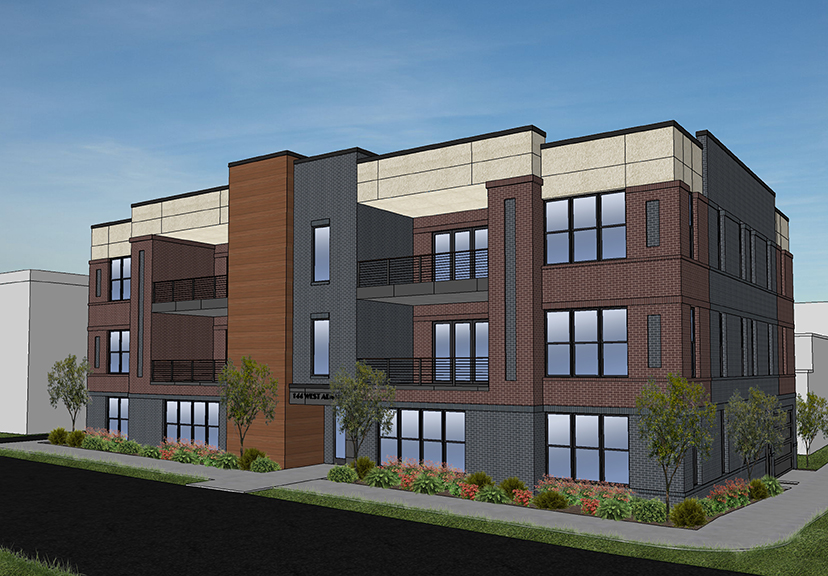 enhance the rendering do not change the view or the materials at all keep them the same just enhance all the details provide lush vegetation and some cars on the street with people walking by render in a night time setting with landscape lighting shining up on the building