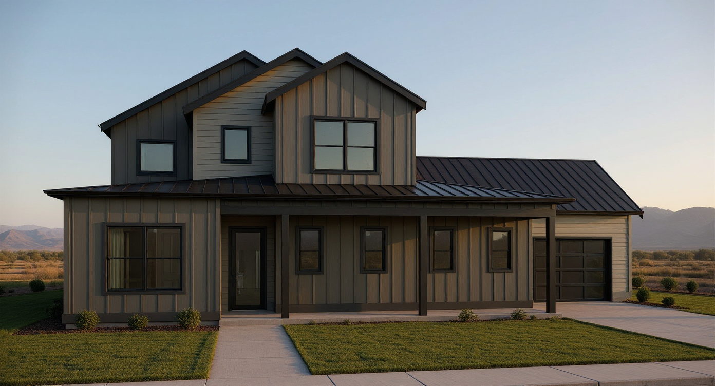 render a modern three story house with basement garage in a sleek westcoast contemporary architecture the exterior is a combination of textured white walls and smooth dark gray accents there is a grey stone facade used around the garage door and the entry veranda highlight large glass windows framed in matte black the roof is flat and contemporary the front entrance features elegant stone steps in a cool gray tone leading to a dark wood door the balconies have transparent glass railings the garage door soffits and accent features are a rich walnut brown contrasting with the light gray stone wall surround the house with a lush green lawn set the atmosphere to a clear sunny day with a vivid blue sky capturing a serene and inviting ambiance located in seattle lush climate manicured with modern landscaping with tall cedars and topiary with pampas grasses throughout