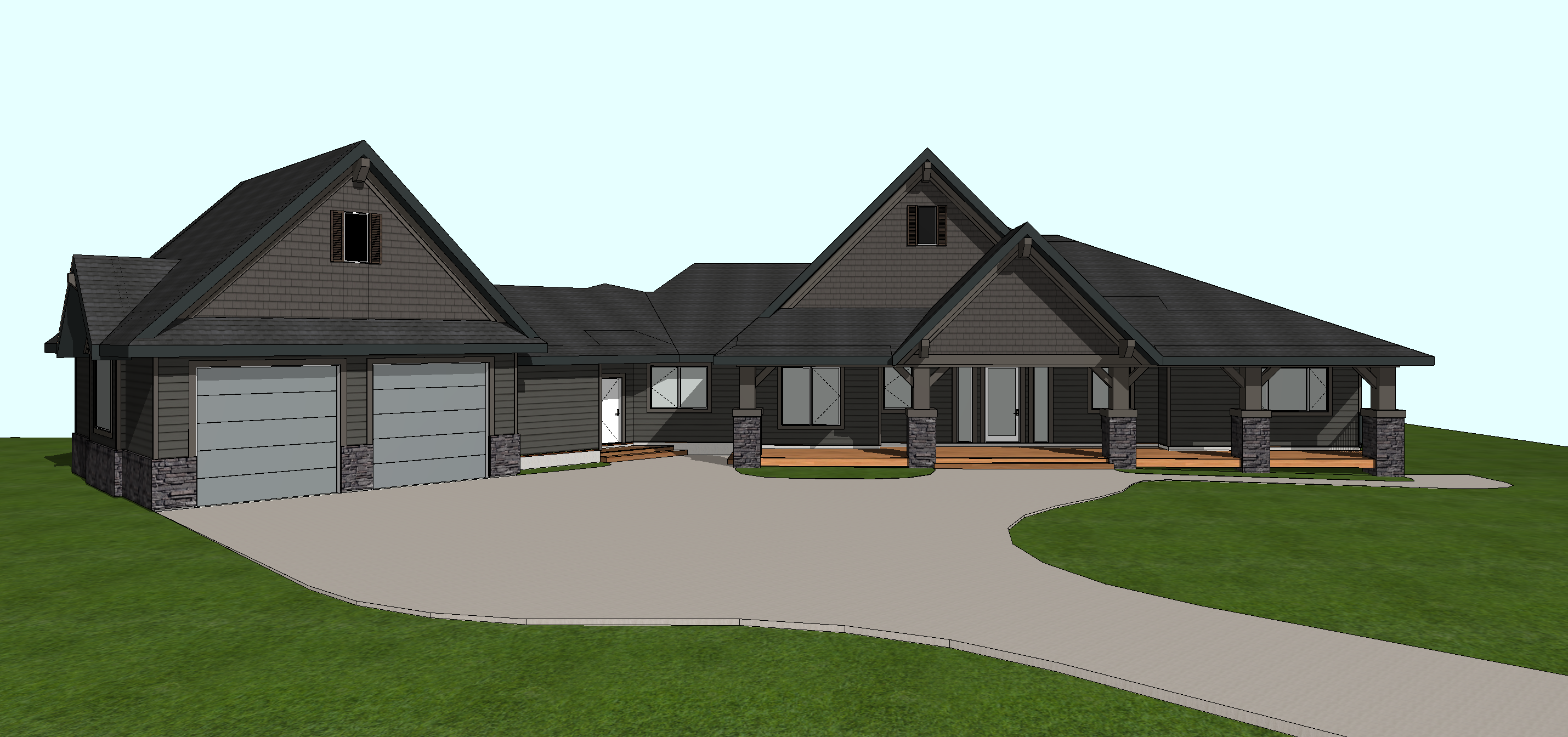 prairie style exterior shot horizontal walnut siding shakes in gables timber accents architecture