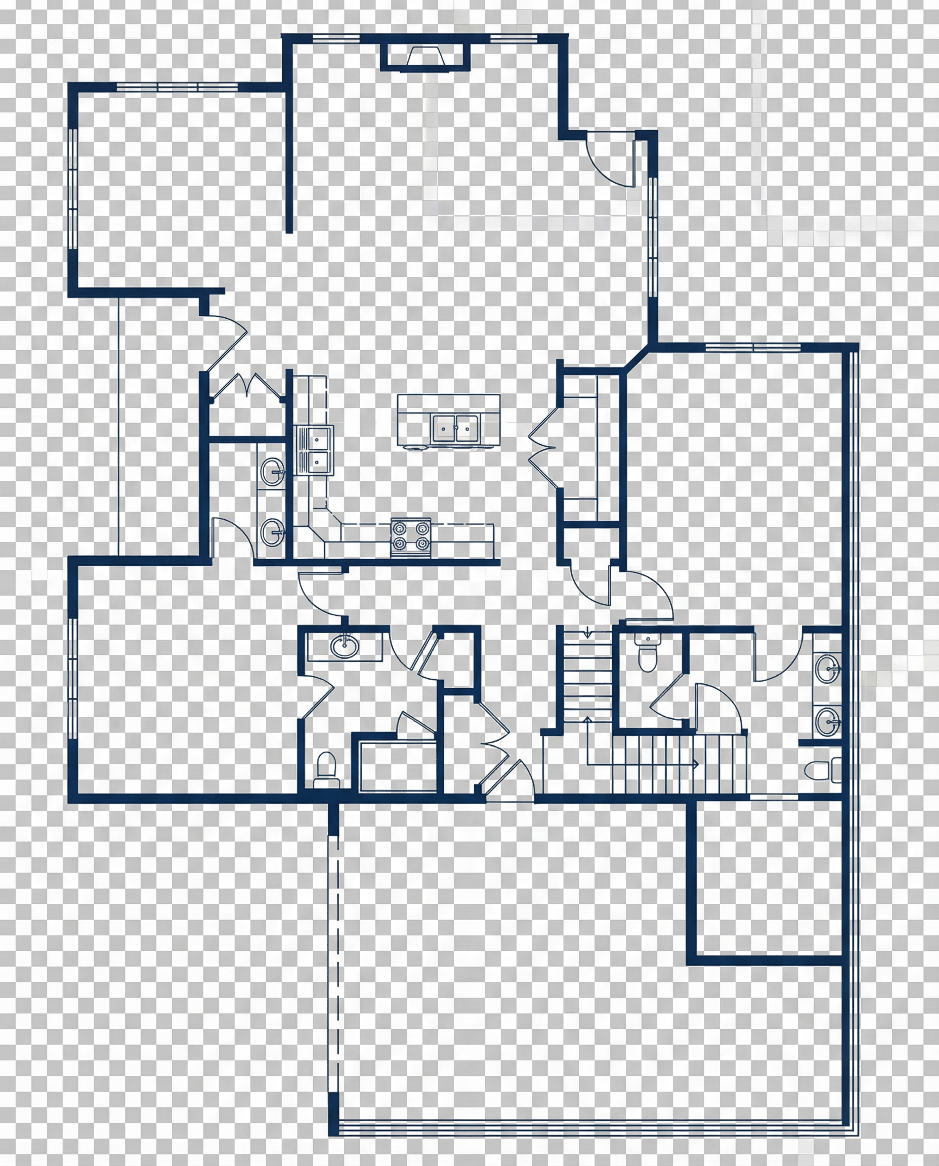 convert this floor plan into a realistic isometric 3d view of a full house show the space from an elevated angle with furniture walls and details visible turn these 2d elevations of the left and front of a house into an isometric drawing showing the exterior only keep the garage on the left along with all bays service doors and windows add the single garage bay door use the same furniture as shows on the plan do not change the orientation of the floorplan