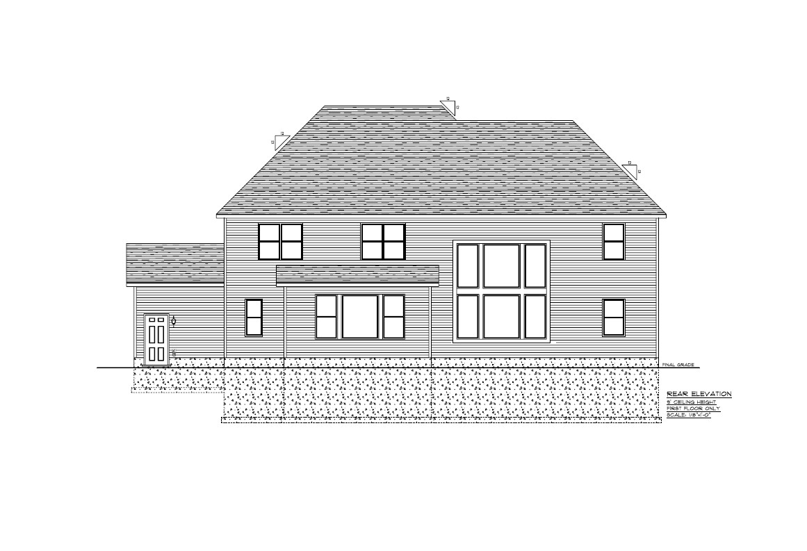 make as photorealistic as possible while keeping textures the same as shown grassy backyard in a farmland area of croton ohio nice lighting remove any text use the following finishes 65625d horizontal siding poured concrete foundation pewter certainteed dimensional shingles wood to be treated unfinished