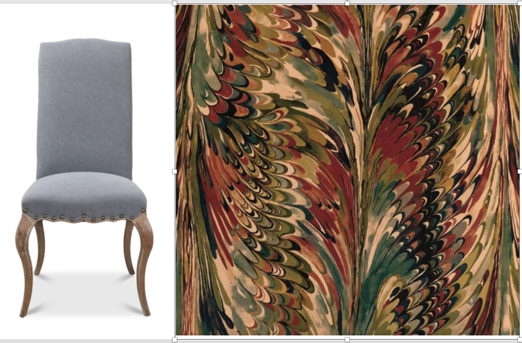 show the chair on the left upholsered with this fabric called tarlow here is the link to the fabric https www kravet com 2023116 319