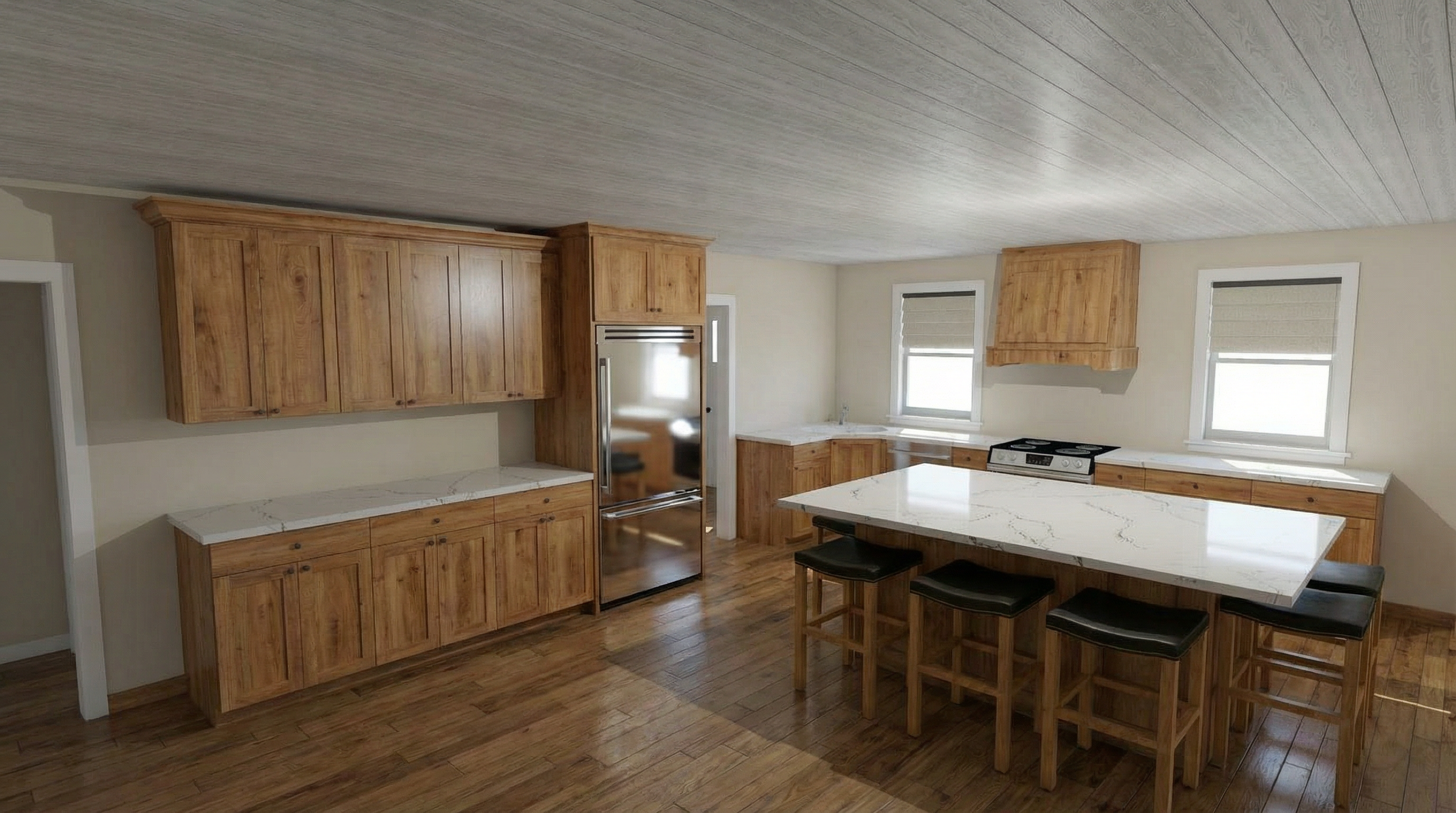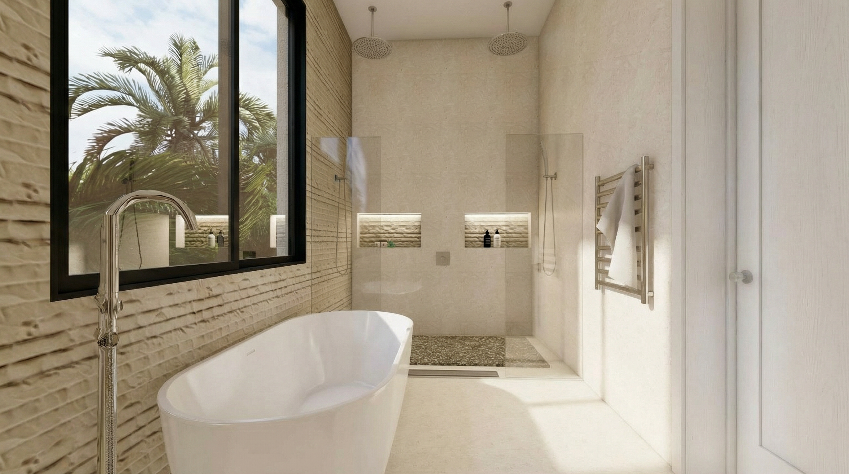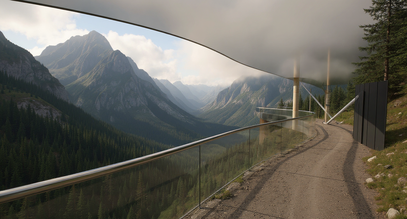black weatherboard cladding black roof black window frames lawn low timber deck extensive native planting background trees sunset