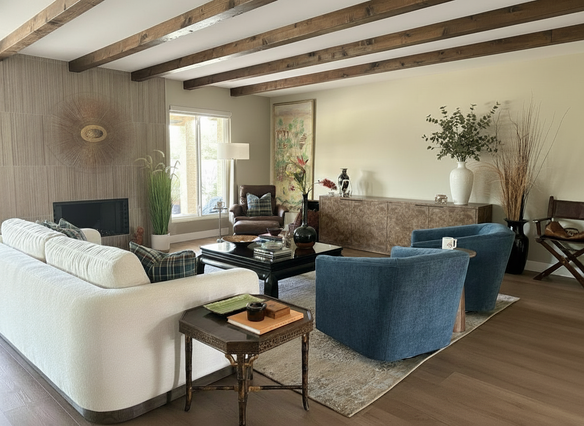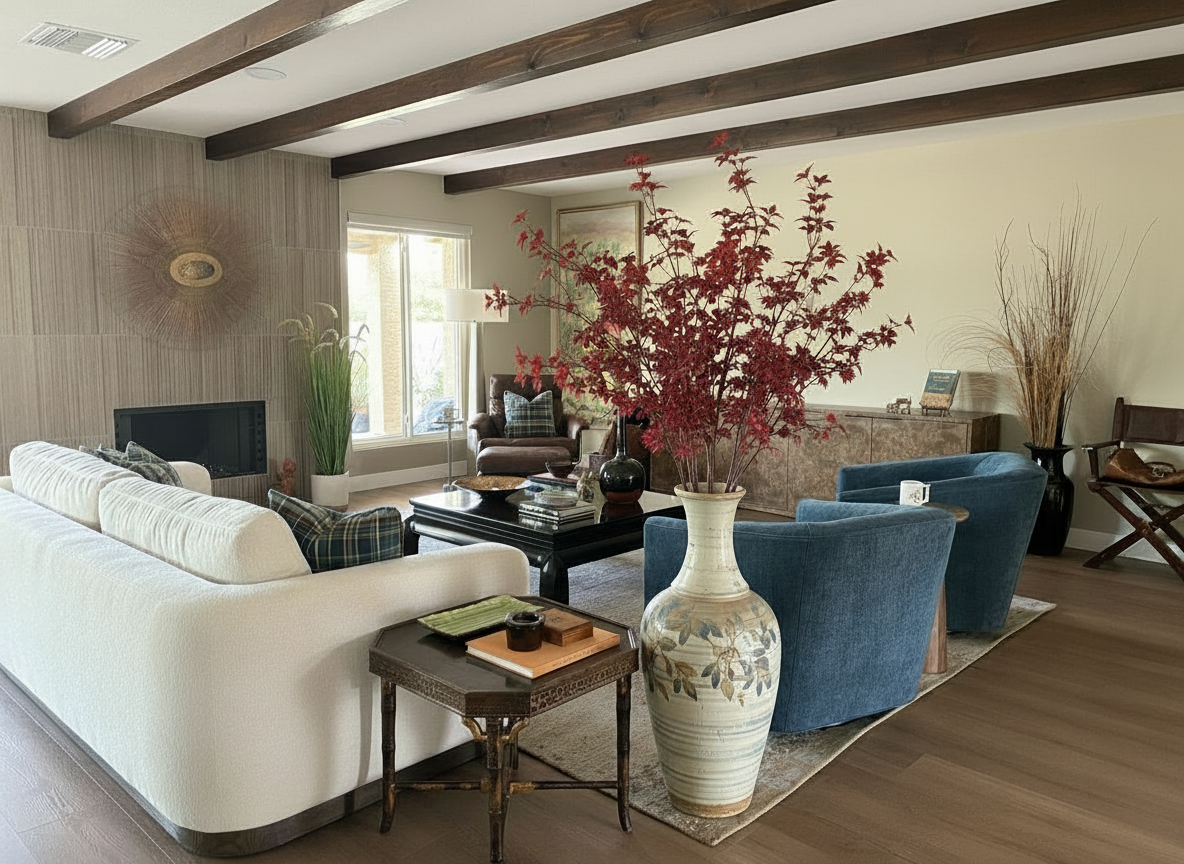 move the vase on the back wall to the left to be centered on the table