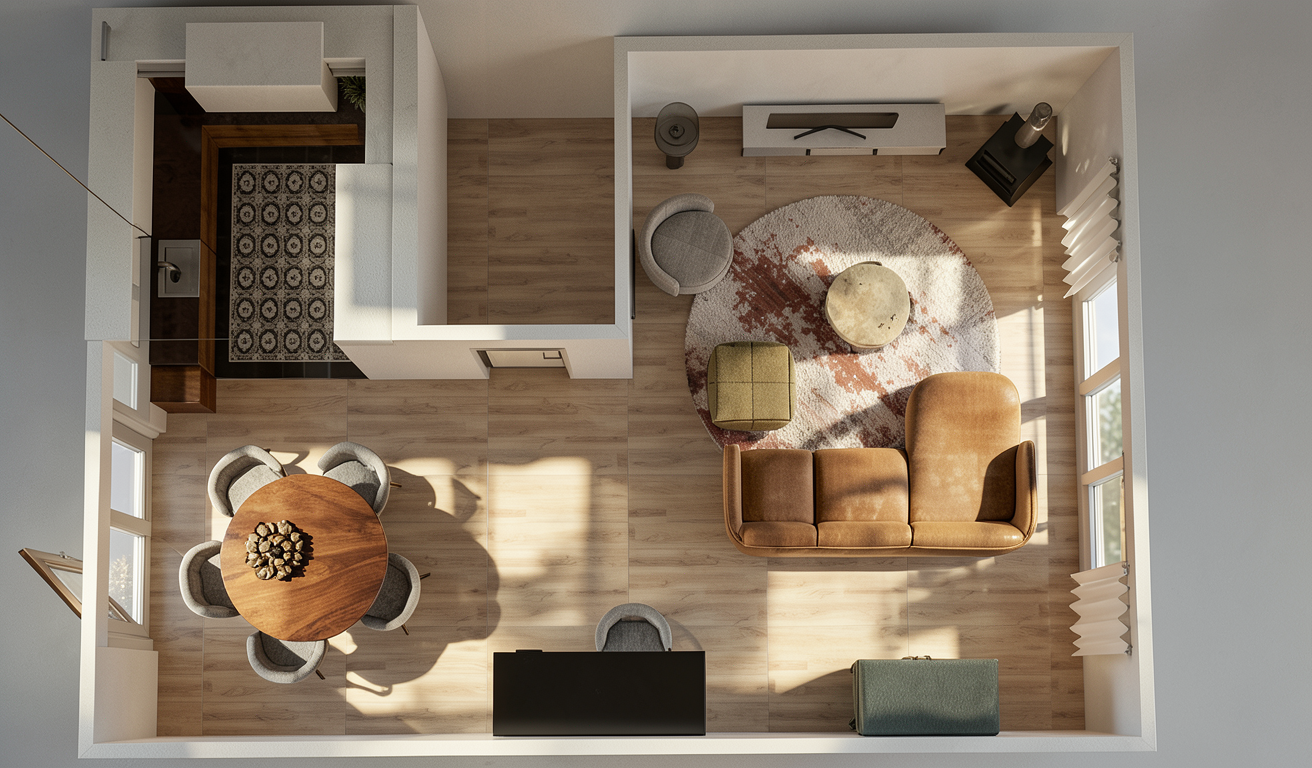 keep the layout as per my image isometric architectural interior view clean and minimal composition neutral color palette whites soft grays beige tones soft natural lighting no strong shadows highly architectural representation precise geometry uncluttered space emphasis on spatial perception and proportions simple materials wood concrete plaster no decoration or very minimal furniture calm and balanced atmosphere professional architectural visualization style axonometric isometric projection no perspective distortion matte finishes subtle textures high clarity refined and elegant designed for an elderly client warm but neutral feeling