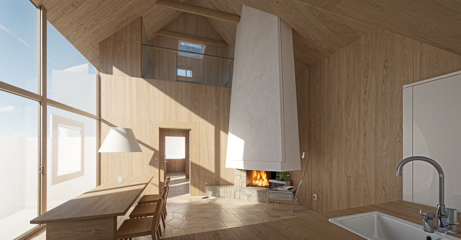create a highly realistic image of the interior space and maintain the geometry travertine floor and columns soft lighting coming through